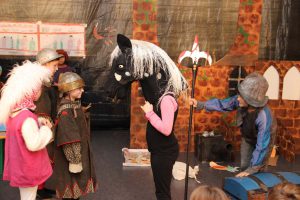Bei der Abschlussaufführung am Freitag, den 4. November 2016, im „Anpfiff ins Leben“-Pavillon Hoffenheim war für Außenstehende kaum ein Unterschied zwischen Kindern mit und ohne Behinderung zu erkennen. Die Kinder agierten auf der Bühne als eingespieltes Team und schlüpften begeistert in verschiedene Rollen – unabhängig von ihrer körperlichen oder geistigen Verfassung. An den drei vorausgehenden Tagen wurde das Theaterstück „Armer Ritter“ von Peter Hack einstudiert. Für die Abschlussaufführung wurden Kleidung, Rüstungen, Helme und Schwerter sowie einem Bühnenbild selbst kreiert. Auf diese Weise bekamen die Kinder nicht nur einen Einblick die Zeit des Mittelalters, sondern übten auch den respektvollen und offenen Umgang miteinander. „Die Kinder haben in der kurzen Zeit sehr viel gelernt und geleistet. Wir haben drei harmonische Tage mit einem gelungenen Endergebnis abgerundet. Theateraufführungen bieten sich hervorragend an für inklusive Projekte“, erklärte „Anpfiff ins Leben“-Mitarbeiterin Laura Trautmann.