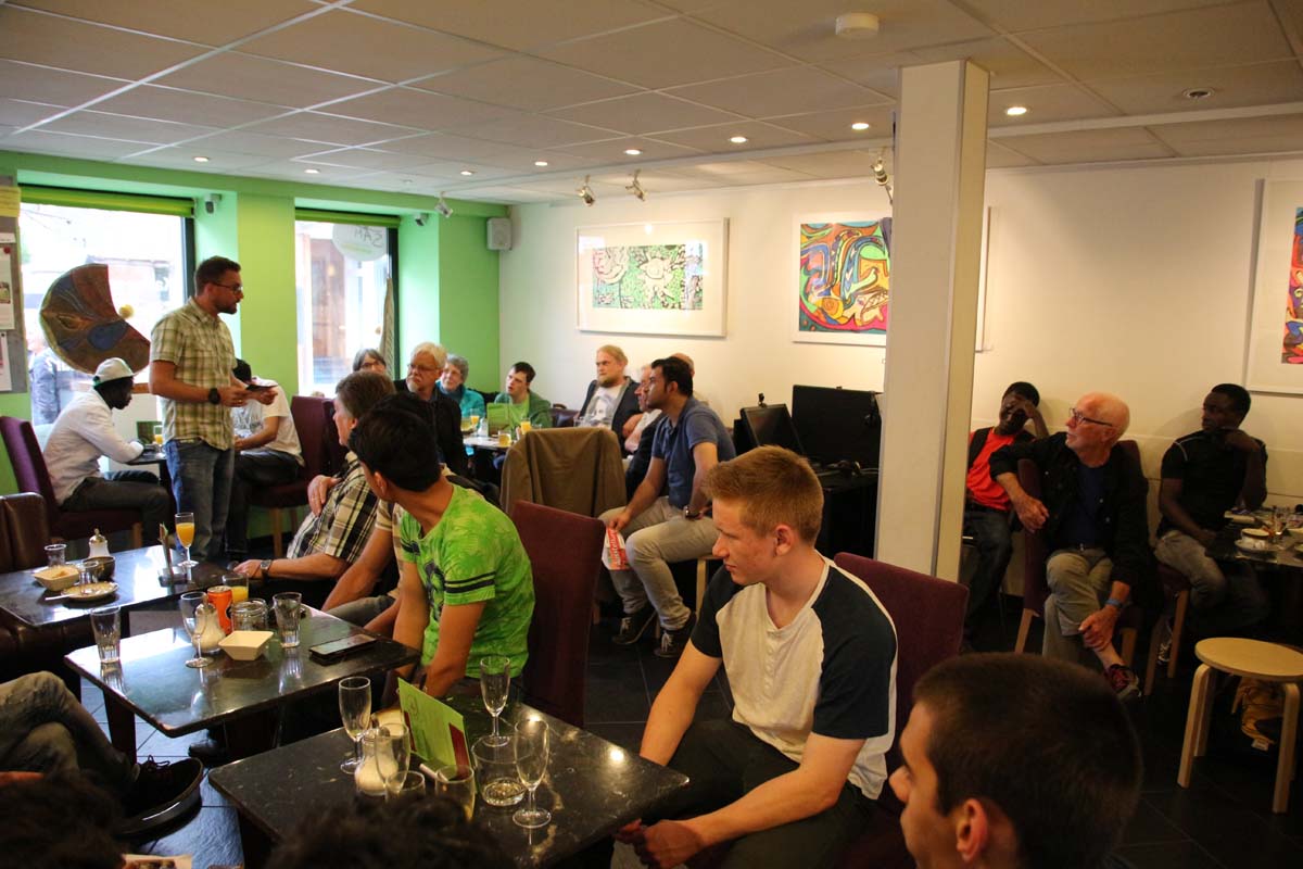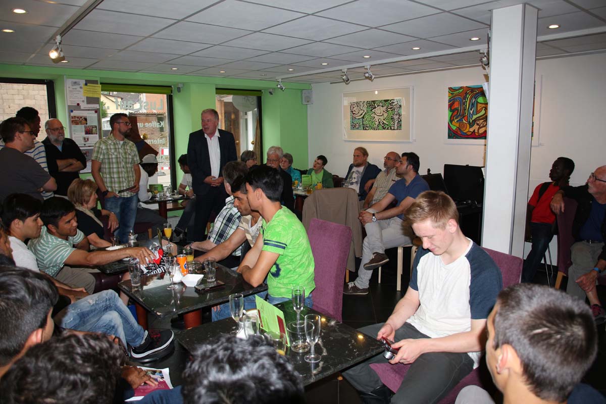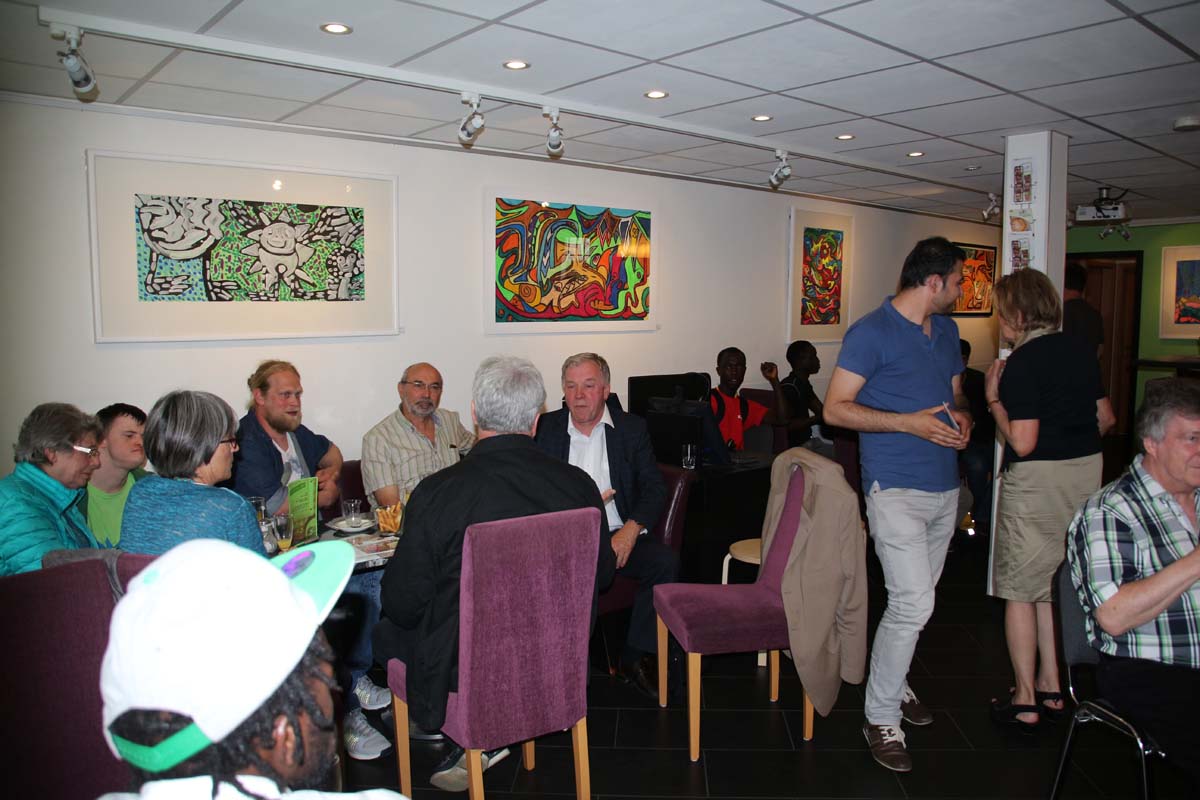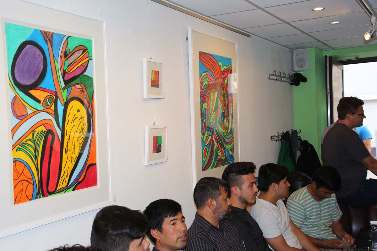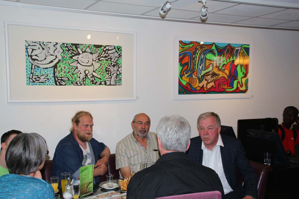 (cr) SAM ist einfach das Café für Alle. Hier trifft nicht nur Kaffee auf Kunst, sondern seit Donnerstag auch Integration auf Inklusion. Mit der neuen Ausstellung des Kunst Werk Haus und deren Künstler des Schwarzacher Hofes kommt Bunte Vielfalt in das Café. Diese Ausstellung war ein persönlicher Wunsch des Vereinsvorstandes Andreas Banse. Alle Kunstwerke sind auch verkäuflich zu vernünftigen Preisen und sie unterstützen damit ein besonderes Projekt.Besuchen sie doch mal das Café SAM und geniessen sie neben einem Tässchen Kaffee, netten Gesprächen mit Menschen aus aller Welt auch die sehenswerte Kunst der Künstler des Schwarzacher Hofes.