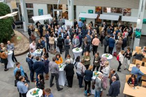 Nach der Mittagspause wurden in vier Panels Fragestellungen rund um die Integration von Geflüchteten in den Arbeitsmarkt diskutiert. Eine zentrale Aussage lautete, dass speziell beim Thema Frauen und Arbeitsmarktintegration mehr passieren müsse. Die Bedeutung des Ehrenamts bei der Integration neuzugewanderter Menschen wurde von allen Beteiligten ausdrücklich gelobt. „Fast alle Geflüchteten, die in eine Ausbildung vermittelt werden konnten, wurden ehrenamtlich begleitet“, merkte ein Teilnehmer an. An die Moderatoren und Keynotespeaker konnten die Panelmitwirkenden zudem Wünsche richten wie etwa eine bessere Erreichbarkeit des Jobcenters oder den Aufbau kommunaler Jobbörsen.