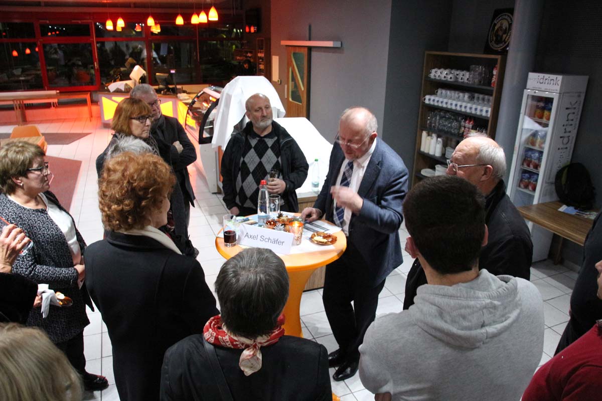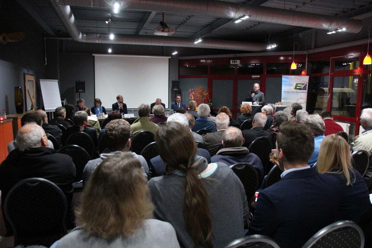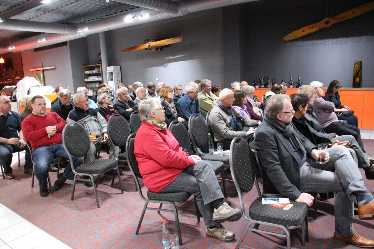 IMG_6790(zg) 2015 – ein Jahr der europäischen Krisen? Der Konflikt zwischen der Ukraine und Russland, griechische Banken, die schliessen, Hundertausende Menschen, die vor Krieg und Hunger fliehen, Abkapselungsversuche aus Großbritanninen und der furchtbare Terror in Paris. Und Europa mittendrin, das nur unzureichend zu gemeinsamem Handeln in der Lage ist. Kurz vor Jahresende gab es viel Gesprächsbedarf. Axel Schäfer, stellvertretender SPD-Fraktionsvorsitzender und ausgewiesener Europakenner war auf Einladung von Lars Castellucci, der SPD Sinsheim und der Europa-Union Rhein-Neckar ins Technikmuseum gekommen, um Frage und Antwort zu stehen. Gemeinsam mit Paul Greenwood und Renate Kinzinger von der deutsch-britischen Gesellschaft Rhein-Neckar und Flüchtlingsexperte Lars Castellucci diskutierte er die drängenden Fragen.