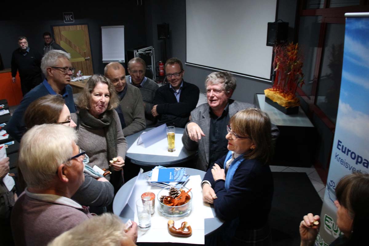 Das Publikum nutzte die Gelegenheit an drei Thementischen die zwei Politiker und die Grossbritannien-Experten im direkten Gespräch zu befragen, sich zu informieren und eine Meinung zu bilden. Geht es den Briten nur ums Geld? Was bedeutet europäische Solidarität heute? Und wie kann eine effiziente, menschenwürdige Flüchtlingspolitik in Europa aussehen? Im Vordergrund des Abends stand der Austausch. Wohin wird Europa nach diesem Jahr steuern? Lars Castellucci und Axel Schäfer interessierte, was die rund 50 gekommenen Sinsheimerinnen und Sinsheimer dazu dachten. Renate Kinzinger und Paul Greenwood waren gespannt auf die Meinung des „Festlandes“ zur aktuellen Situation auf der Insel.