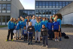 (zg) Am Samstagmorgen bekamen „Die Wieslocher Wiesel“ Besuch aus dem Bundestag: der hiesige Bundestagsabgeordnete Dr. Jens Brandenburg besuchte die Sportlerinnen und Sportler in der Kreisporthalle Wiesloch und war bei ihrem Training am Spielfeldrand dabei.