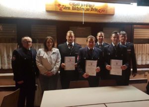 Alexander Bauer, Jennifer Kratzel, Marco Krieger, Matthias Rödler und Marcel Wehrle wurden bei der Jahreshauptversammlung für die nächsten 5 Jahre zum Abteilungsausschuss gewählt. Matthias Rödler, Thomas Krieger und Steffen Scherb haben im vergangenen Jahr die meisten Übungen besucht und erhielten dafür eine kleine Anerkennung. Bürgermeisterin Tanja Grether hat bei den nachfolgenden Kameraden eine Beförderung durchgeführt. Arno Lenz wurde zum Oberlöschmeister befördert. Eine Beförderung zum Hauptfeuerwehrmann erhielten Steffen Scherb, Marcel Wehrle und Benjamin Gebhard.