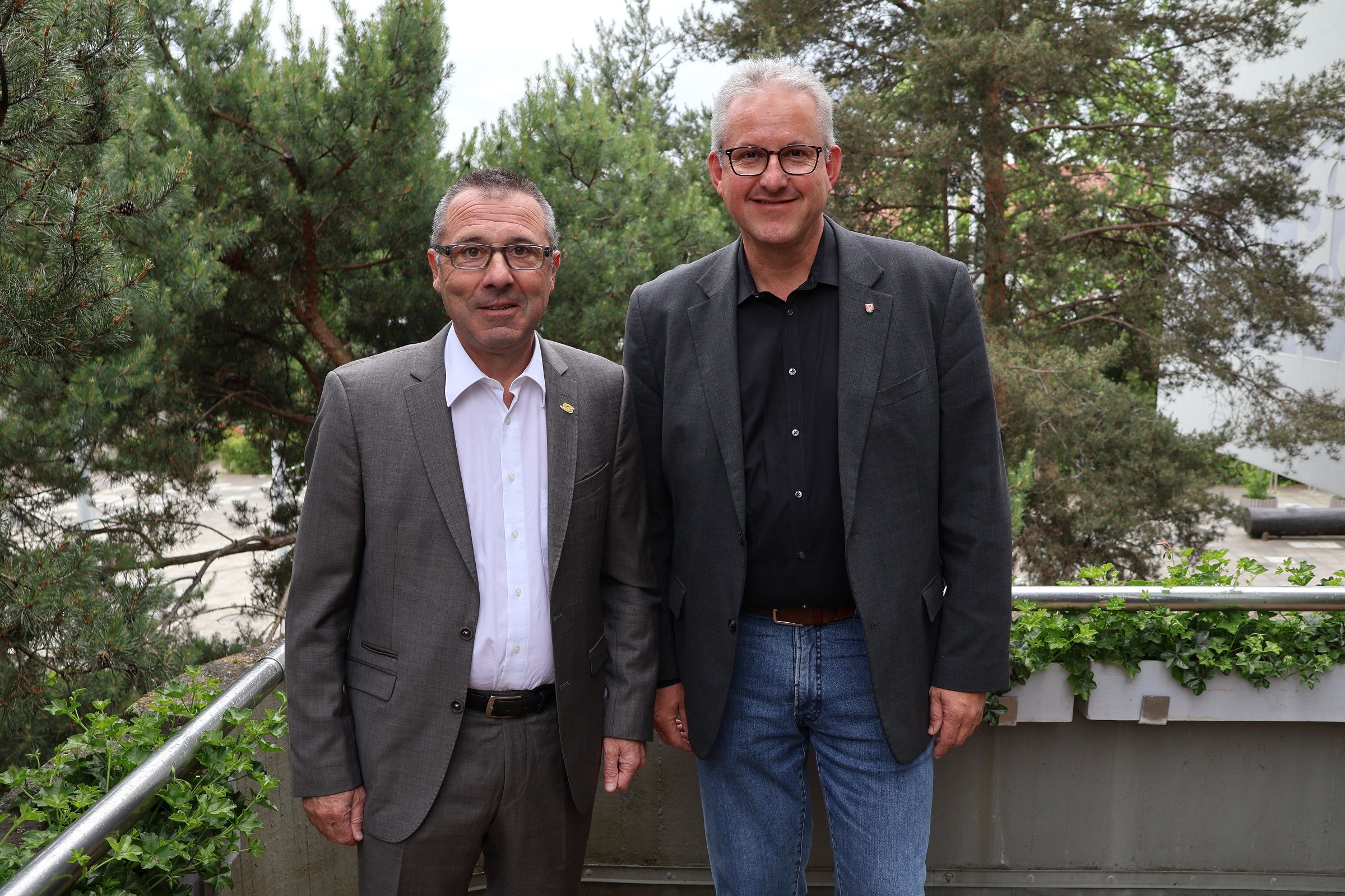 Willkommen in Walldorf: Bürgermeister Matthias Renschler (re.) begrüßt Jörg Albrecht, den designierten neuen Vorsitzenden des Vereins Anpfiff ins Leben.