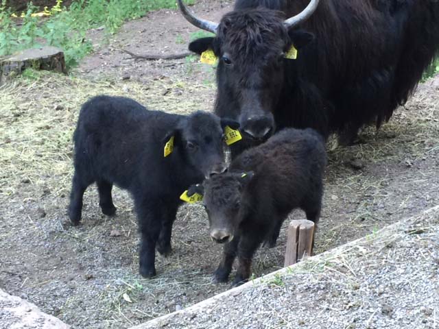 Erst vor wenigen Tagen wurde ein zweites Yak-Kalb geboren. Schon nach kürzester Zeit hat es die Herzen der Wildparadies-Besucher erobert – ganz verschmust streunt das kleine Kalb am Zaun entlang und fordert Streicheleinheiten von den Besuchern ein. Wer kann da schon Nein sagen? Übrigens: Yaks sind in Zentralasien beheimatet. Die Bullen können eine Kopf-Rumpf-Länge von bis zu 3,25 Metern und ein Gewicht von über einer Tonne erreichen – mit ihrem dunklen Fell und stattlichen Größe bieten sie den Besuchern einen beeindruckenden Anblick.