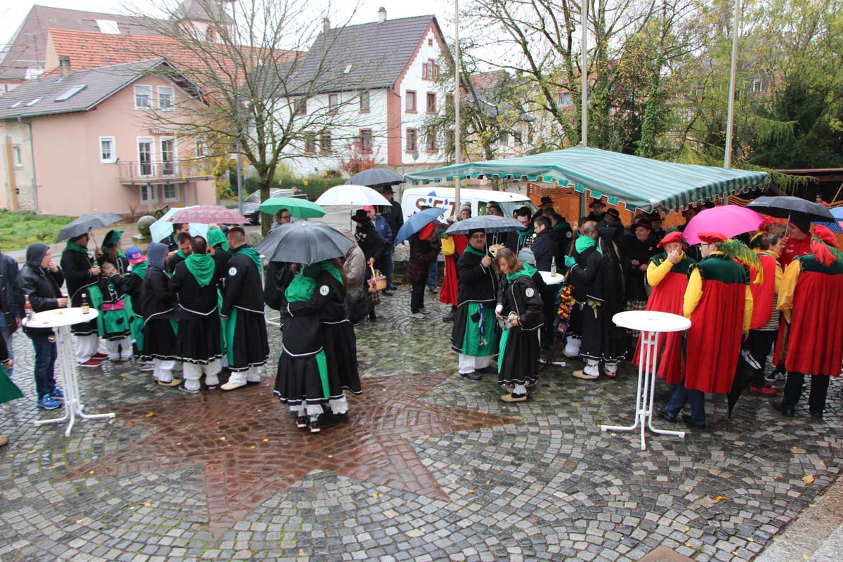 Auch das Schmuddelwetter konnte weder dem ICC, den vielen Besuchern, noch einer großen Abordnung der Hexenzunft aus Eppingen davon abhalten, zu einem der wichtigsten Tagen des Jahres, vor dem Rathaus in Ittlingen Präsenz zu zeigen. Mit reimenden Worten fand Präsident Martin Uhler, pünktlich um 11:11 Uhr nach 11 lauten Knallern, passende Worte zum Kampagnenstart. Natürlich durfte auch der traditionelle erste Zumsel nicht fehlen, welcher privilegierter Weise von den Zumselweibern höchstpersönlich verköstigt wurde.