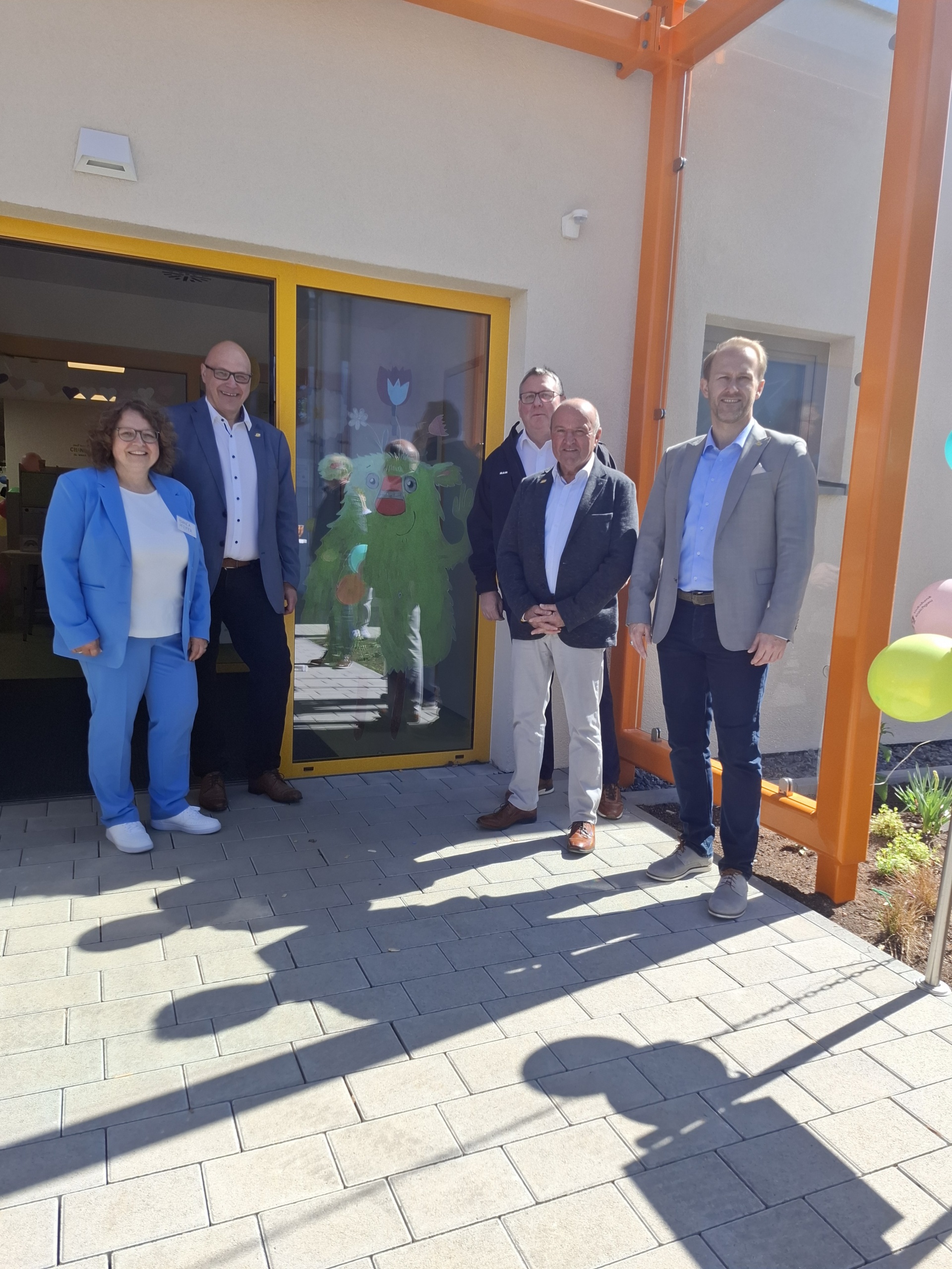 Stadt Sinsheim. V.l.n.r.: Kindergartenleiterin Bianca Pfeifer, Ortsvorsteher Martin Gund, Bürgermeister Bernd Kippenhan, Ortsvorsteher Manfred Wiedl, Oberbürgermeister Marco Siesing.
