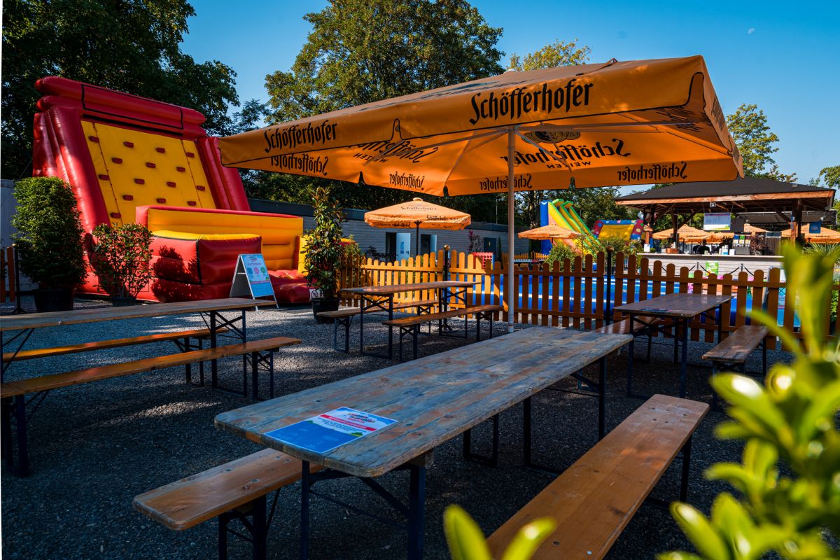 Für das leibliche Wohl wird im kleinen Biergarten inmitten des Open-Air Areals gesorgt. Unter Beachtung der aktuellen Corona-Verordnung sind hier Erfrischungen und Snacks sowohl für die kleinen Abenteurer als auch die großen Begleitpersonen erhältlich.