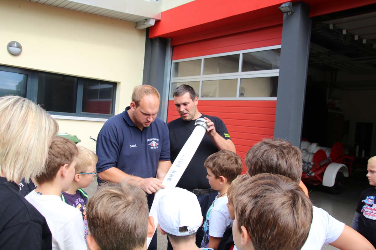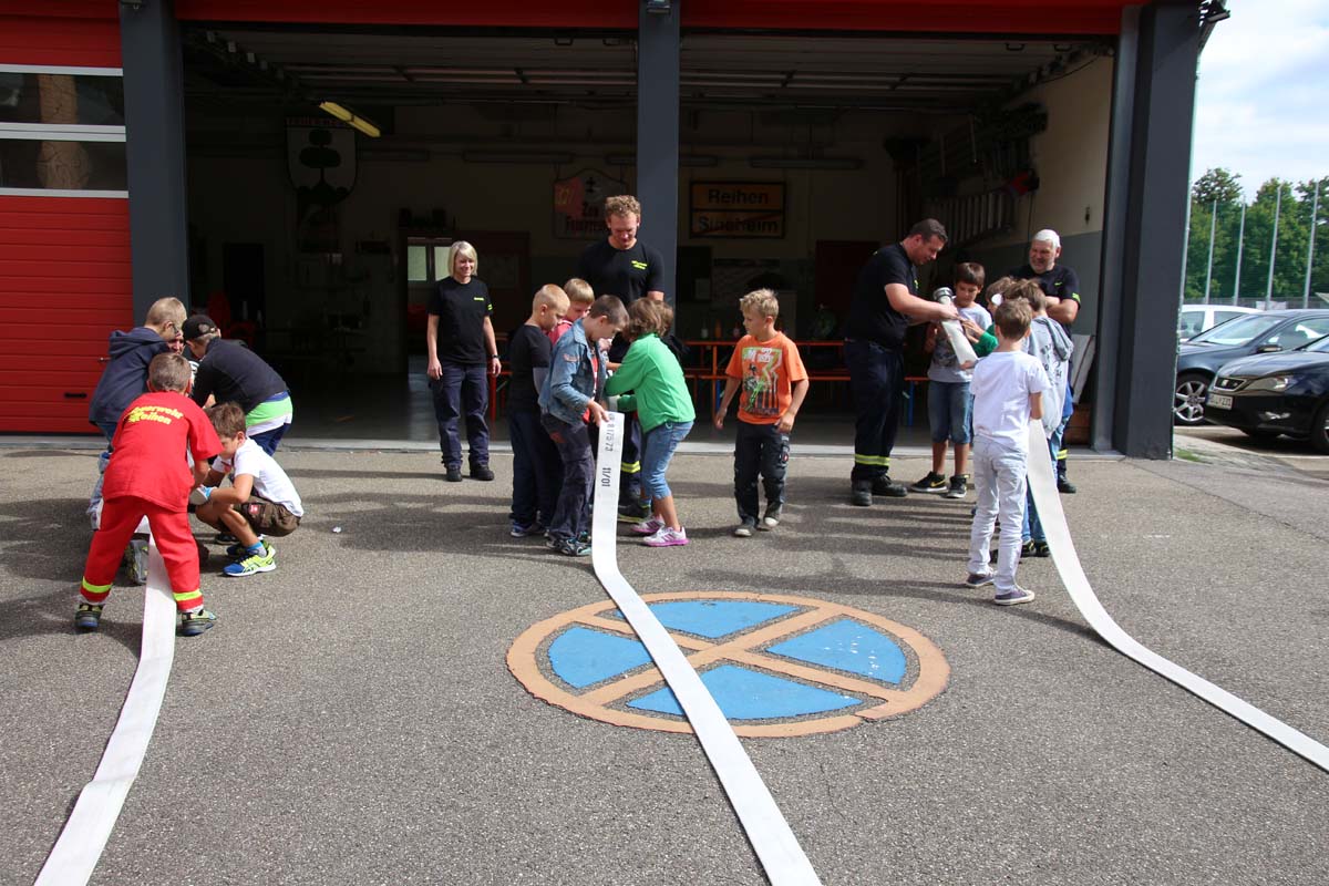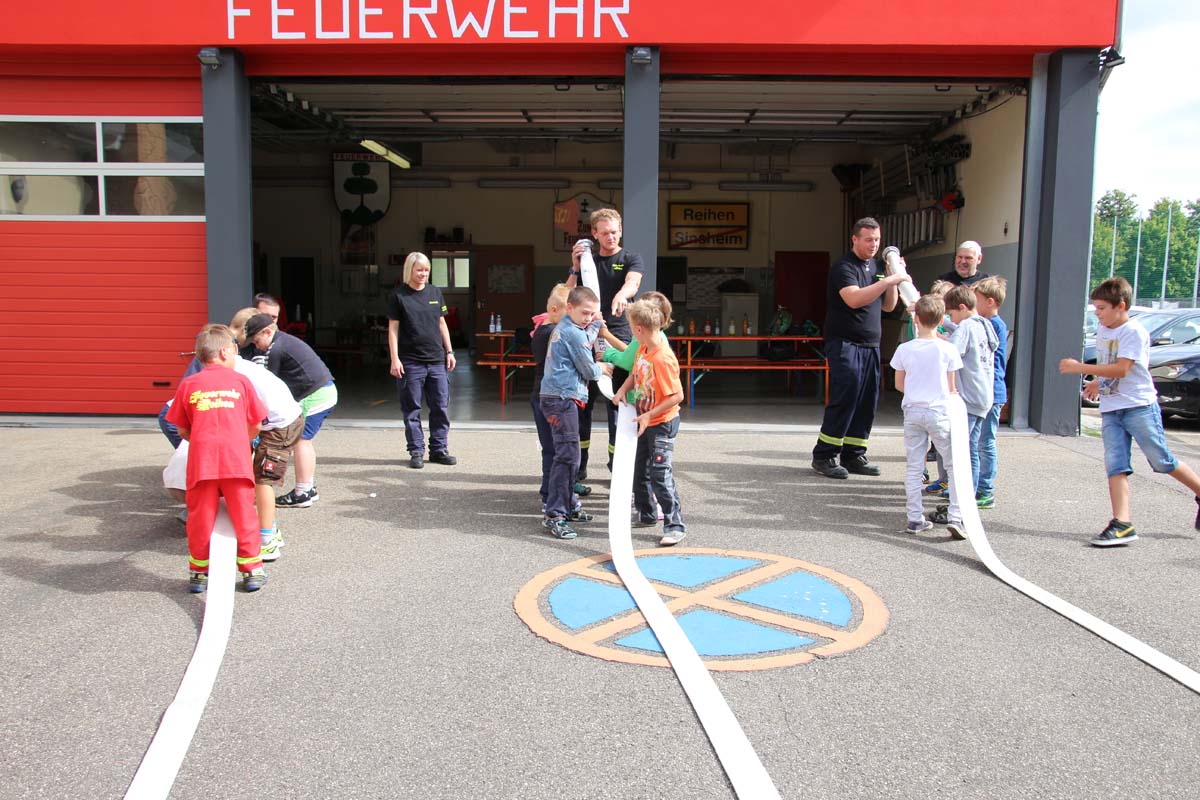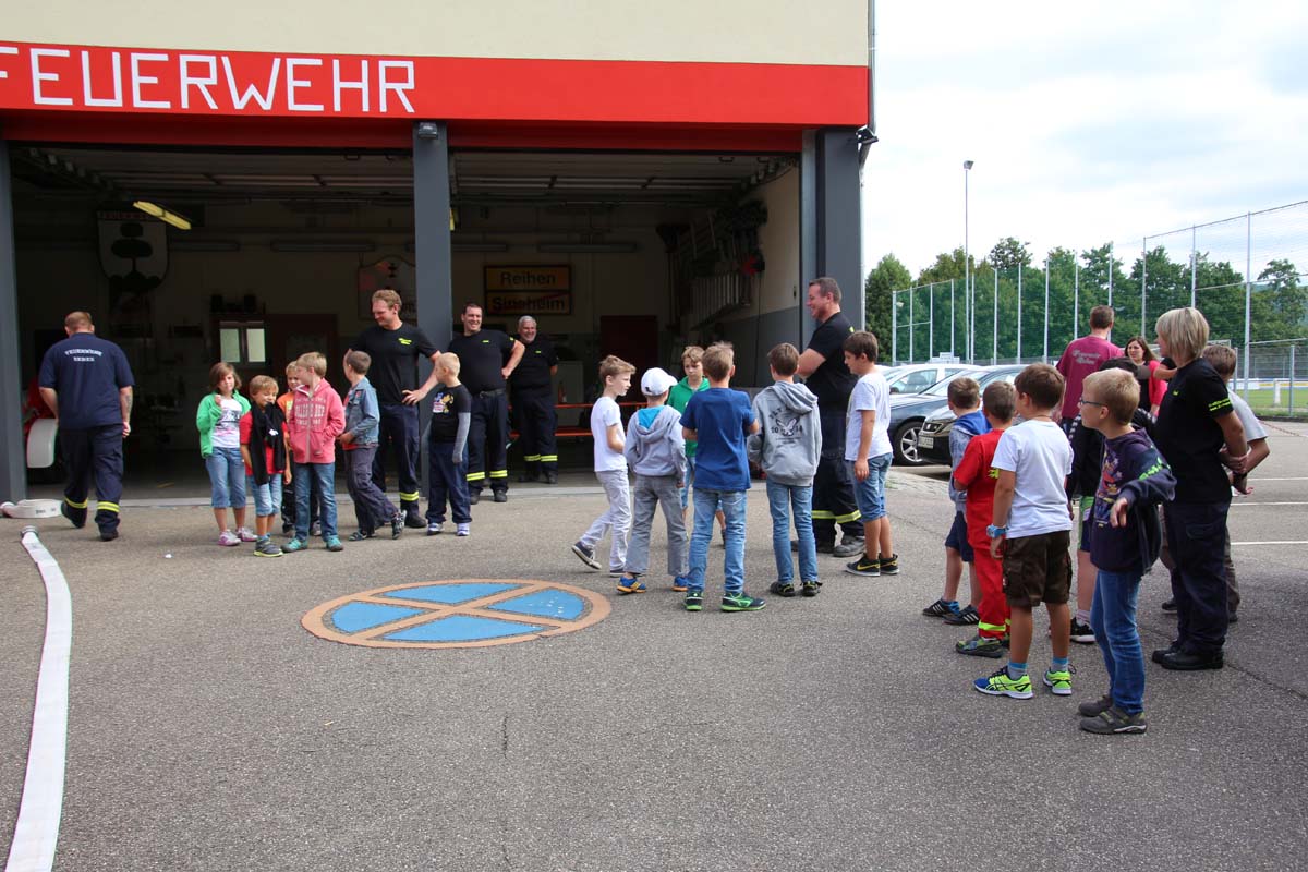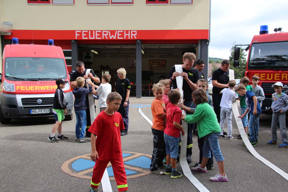 (cr) Da begannen Kinderaugen zu leuchten. Wer möchte als Kind nicht einmal Feuerwehrmann werden? Die Jungs von der FFW Reihen hatte die Jugend gut im Griff. Zu Beginn durften sie erstmal den grossen Feuerwehrtruck unter die Lupe nehmen. Den vielen Fragen über die Ausrüstung standen die Feuerwehrmänner gerne Rede und Antwort. Das Fahrzeug und die Ausrüstung wurde von den Kindern in Beschlag genommen und auf Herz und Nieren getestet. Das war nicht nur ein riesen Spassfür die siebzehn Jungs und das eine Mädchen, sondern weckte auch das Interesse an der Arbeit der Feuerwehr. Weiter ging es mit einem kleinen Wettbewerb für die Kids. In drei Gruppen musste ein Tischtennisball durch einen Feuerwehrschlauch. Das weckte auch den Ehrgeiz der Feuerwehrleute die ihre Gruppen tatkräfigt unterstützten. Mit einer Schnitzeljagd ging es quer durch den Ort Reihen und sorgte für den nötigen Hunger zum Mittagessen mit Spaghetti Bolognese. Auch nach dem Essen sorgte die FFW Reihen für Speil und Spannung bei den Kids. Das war nicht nur ein tolles Kinderferienprogramm sondern auch eine hervorragende Nachwuchsarbeit und in ein paar Jahren ist es vielleicht gerade eines dieser Kinder das einen Brand löscht oder ein Leben rettet.