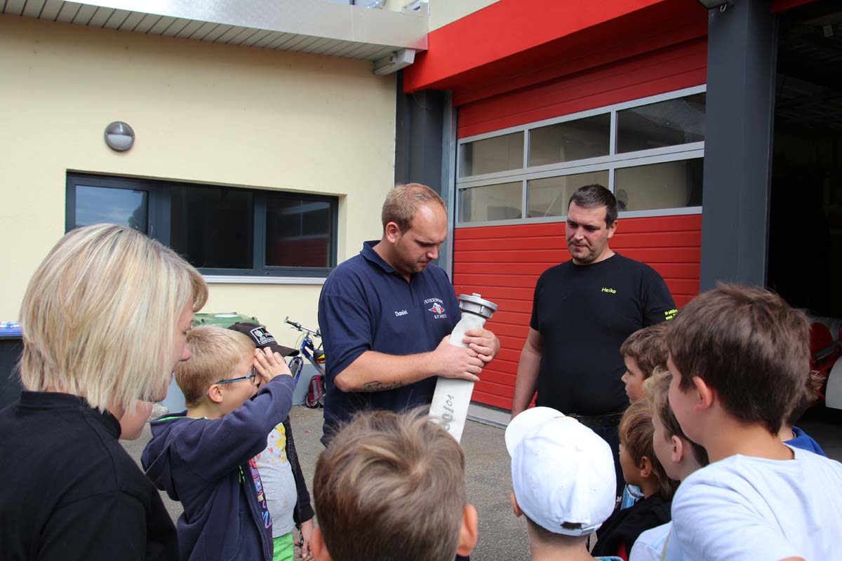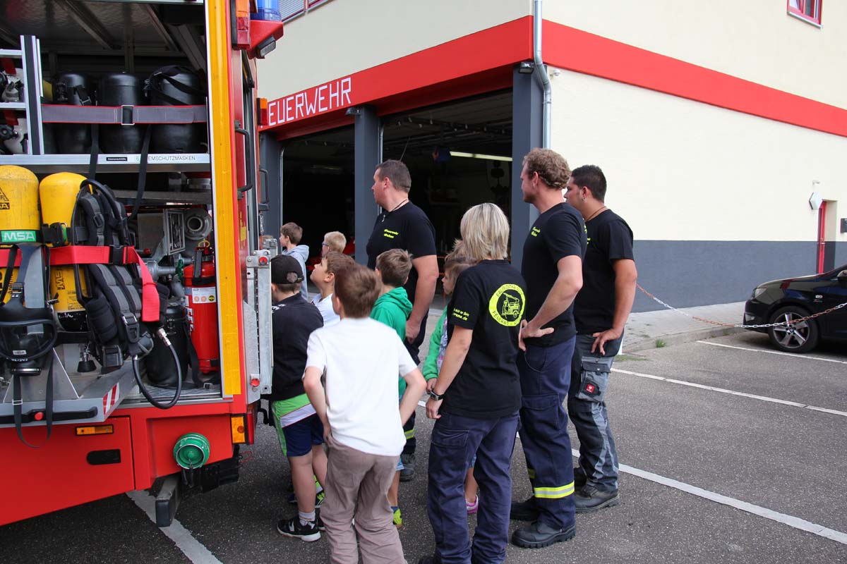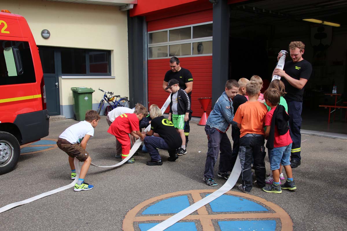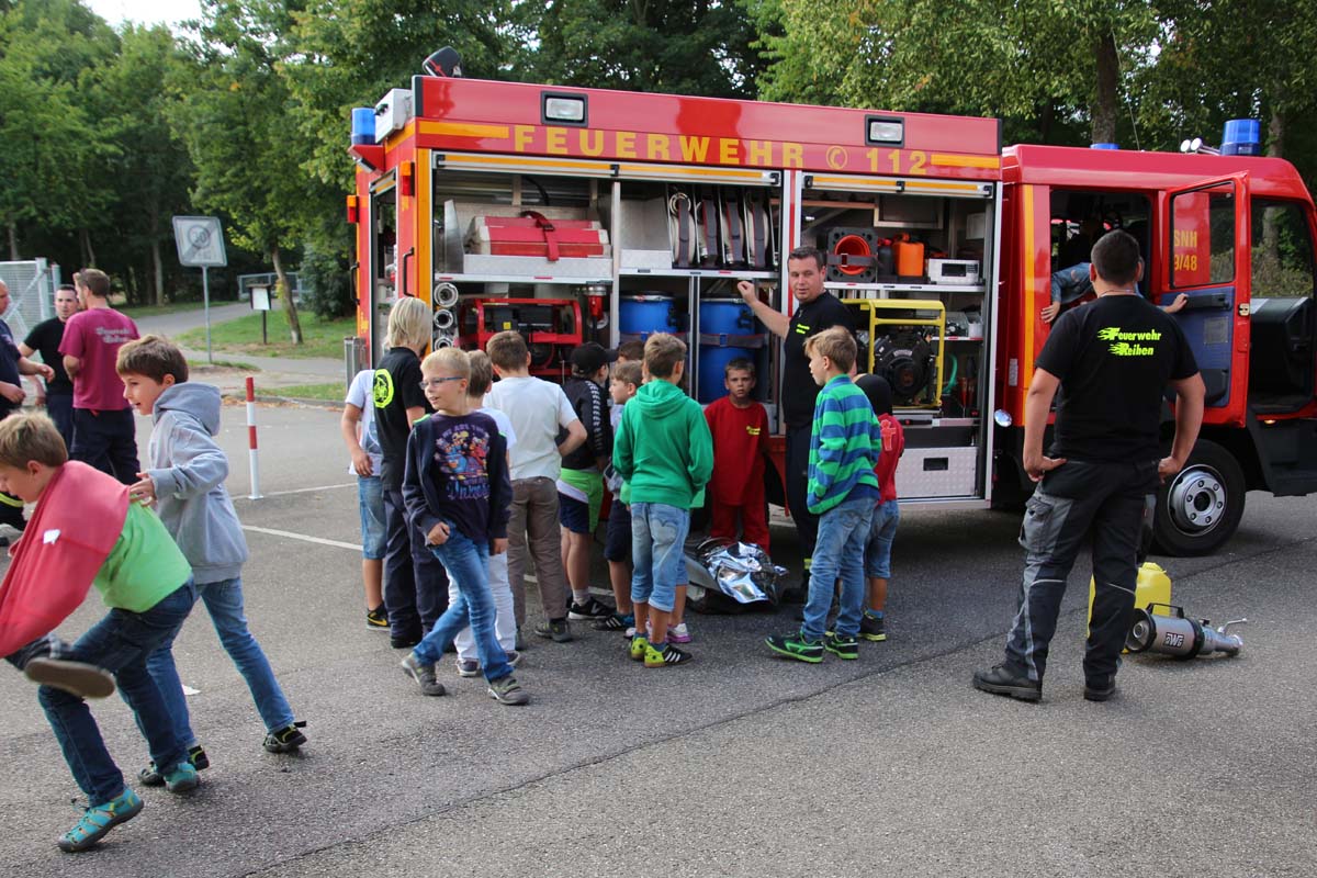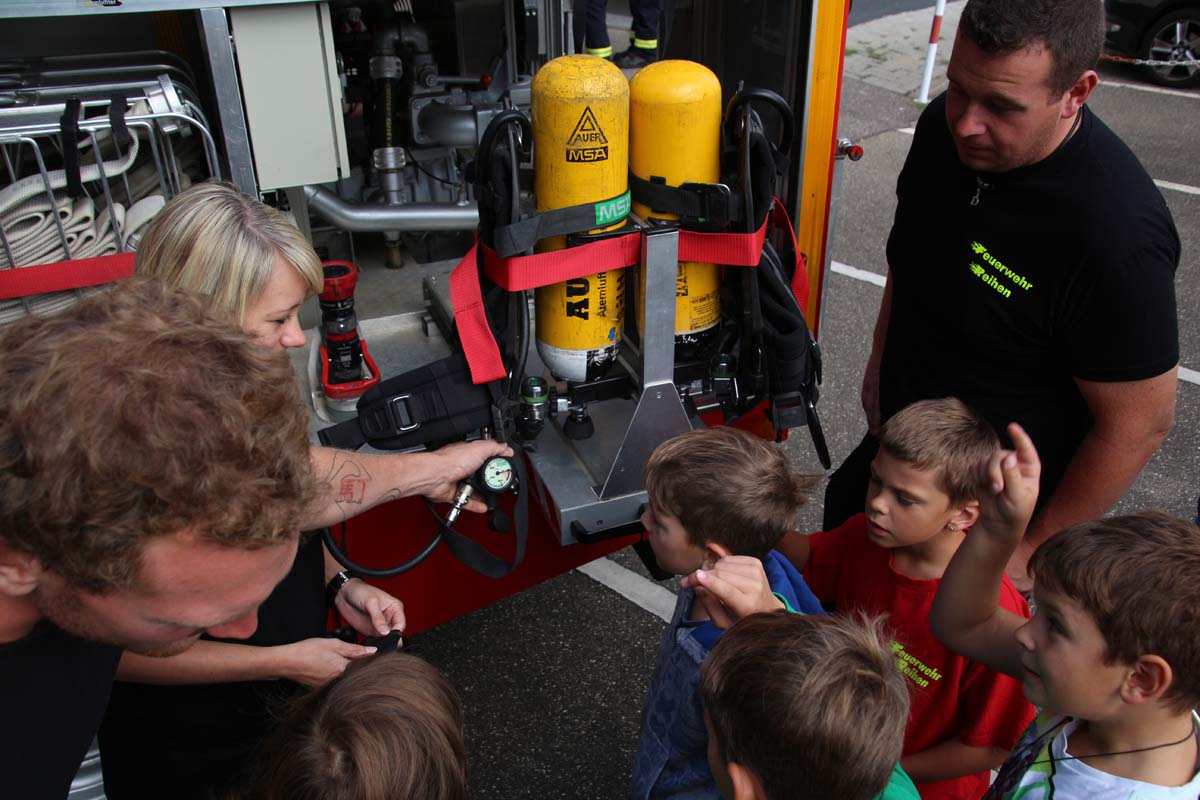 (cr) Da begannen Kinderaugen zu leuchten. Wer möchte als Kind nicht einmal Feuerwehrmann werden? Die Jungs von der FFW Reihen hatte die Jugend gut im Griff. Zu Beginn durften sie erstmal den grossen Feuerwehrtruck unter die Lupe nehmen. Den vielen Fragen über die Ausrüstung standen die Feuerwehrmänner gerne Rede und Antwort. Das Fahrzeug und die Ausrüstung wurde von den Kindern in Beschlag genommen und auf Herz und Nieren getestet. Das war nicht nur ein riesen Spassfür die siebzehn Jungs und das eine Mädchen, sondern weckte auch das Interesse an der Arbeit der Feuerwehr. Weiter ging es mit einem kleinen Wettbewerb für die Kids. In drei Gruppen musste ein Tischtennisball durch einen Feuerwehrschlauch. Das weckte auch den Ehrgeiz der Feuerwehrleute die ihre Gruppen tatkräfigt unterstützten. Mit einer Schnitzeljagd ging es quer durch den Ort Reihen und sorgte für den nötigen Hunger zum Mittagessen mit Spaghetti Bolognese. Auch nach dem Essen sorgte die FFW Reihen für Speil und Spannung bei den Kids. Das war nicht nur ein tolles Kinderferienprogramm sondern auch eine hervorragende Nachwuchsarbeit und in ein paar Jahren ist es vielleicht gerade eines dieser Kinder das einen Brand löscht oder ein Leben rettet.
