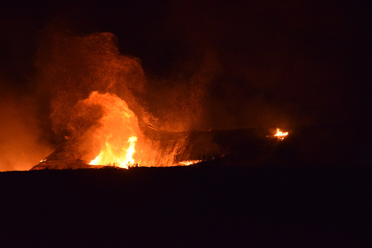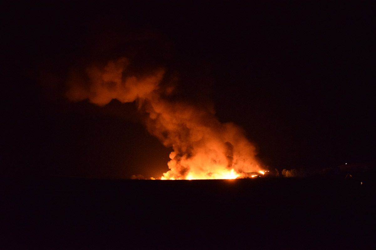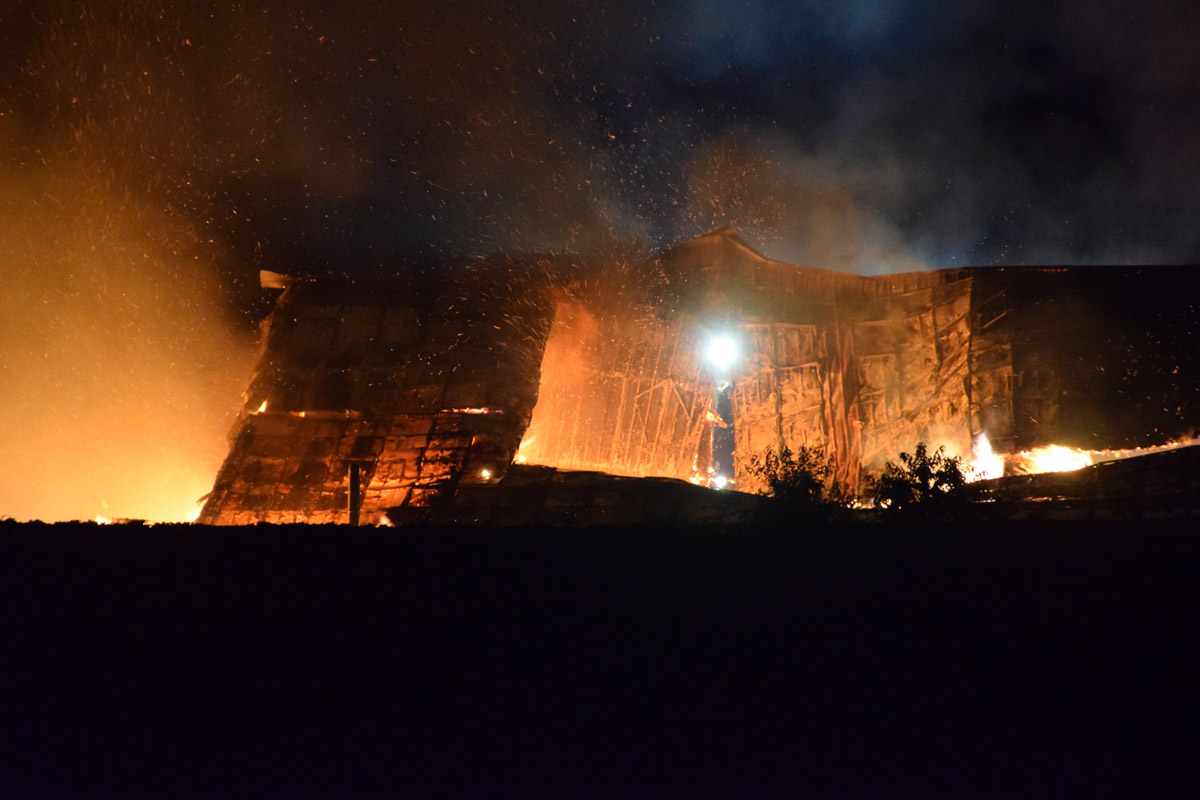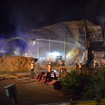 Kirchardt. (pol) Zu einem Großbrand kam es in der vergangenen Nacht in Kirchardt. Gegen 23.00 Uhr gingen bei Polizei und Feuerwehr die ersten Notrufe ein, dass es auf einem Hof in der Grombacher Straße brennen würde. Bei dem Brand kamen zirka 5.000 junge Puten ums Leben. Der Stall brannte völlig nieder. Eine daneben stehende Lagerhalle mit darin gelagerten, zirka 500 Tonnen Weizen, 30 Tonnen Mischfutter sowie 200 Rundballen Stroh fiel ebenfalls den Flammen zum Opfer. Das Übergreifen der Flammen auf eine weitere Stallung für Puten konnte durch den raschen Löschangriff der Feuerwehr verhindert werden. Um genügend Wasser an die Brandörtlichkeit zu bekommen, mussten Löschwassertrassen von über zwei Kilometer aus Kirchhardt gelegt werden. Der Sachschaden liegt ersten Schätzungen nach mindestens zwischen dreieinhalb und vier Millionen Euro. Die Brandursache ist zum jetzigen Zeitpunkt noch unklar. Die Kriminalpolizei hat die Ermittlungen aufgenommen.