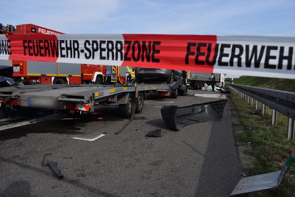 Sinsheim/Kirchardt. (pol) Bei einem Auffahrunfall auf der Autobahn 6 bei Kirchardt ist am Dienstagnachmittag ein 65-Jähriger tödlich verletzt worden. Der Mann war gegen 15 Uhr mit einem Kleintransporter mit Anhänger, jeweils mit Pkw beladen, in Fahrtrichtung Heilbronn unterwegs. Als er nach einem Überholmanöver wieder rechts einscheren wollte, bemerkte er das Ende eines Staus offenbar zu spät. Der 65-Jährige versuchte noch auszuweichen, fuhr jedoch mit dem Sprinter auf einen stehenden Sattelzug auf. Dabei kam der Fahrer des Kleintransporters ums Leben. Der Sattelzugfahrer wurde leicht verletzt. Insgesamt entstand Sachschaden in Höhe von circa 45.000 Euro. Im Rahmen der Unfallaufnahme und Bergungsarbeiten kommt es derzeit zu Sperrungen des rechten und mittleren Fahrstreifens.