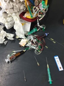 Es handelt sich dabei um medizinische Abfälle wie benutzte, teilweise noch mit Blut verunreinigte Kanülen oder Spritzen. Diese Abfälle müssen, wenn sie in fest verschlossenen Müllsäcken verpackt sind, über die Restmülltonne entsorgt werden.