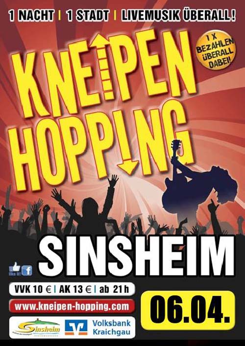 Samstag, der 6. April 2019 kommt das Kneipenhopping wieder nach Sinsheim.