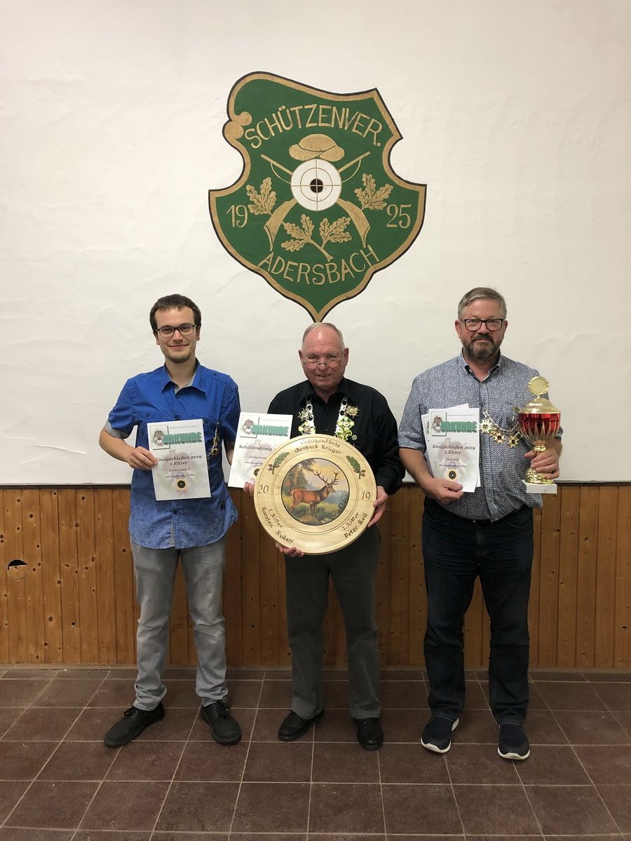 (zg) Die Königsfeier beim Schützenverein Adersbach musste in diesem Jahr leider im Schützenhaus durchgeführt werden da es der Wettergott mit den Geehrten und Gästen nicht so gut meinte.