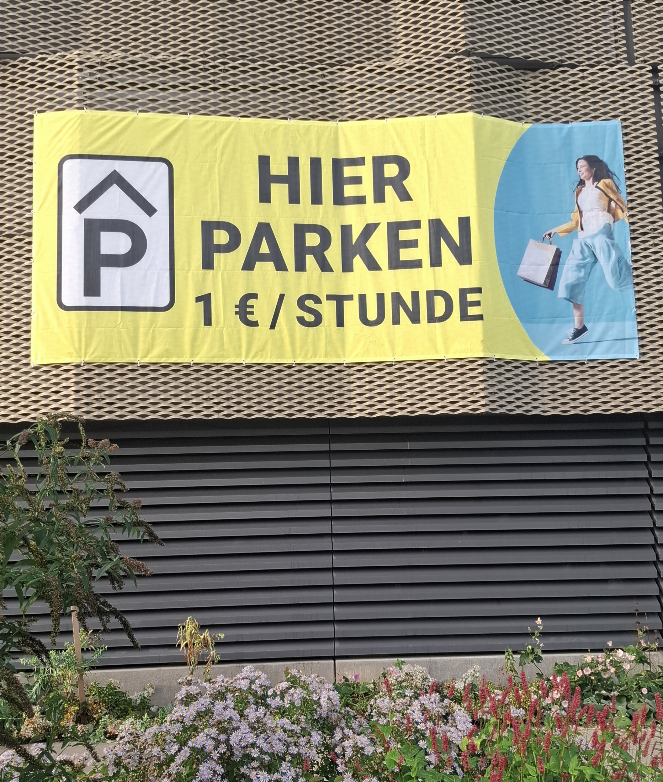 Banner machen auf kostengünstige Parkmöglichkeiten rund um die Innenstadt aufmerksam