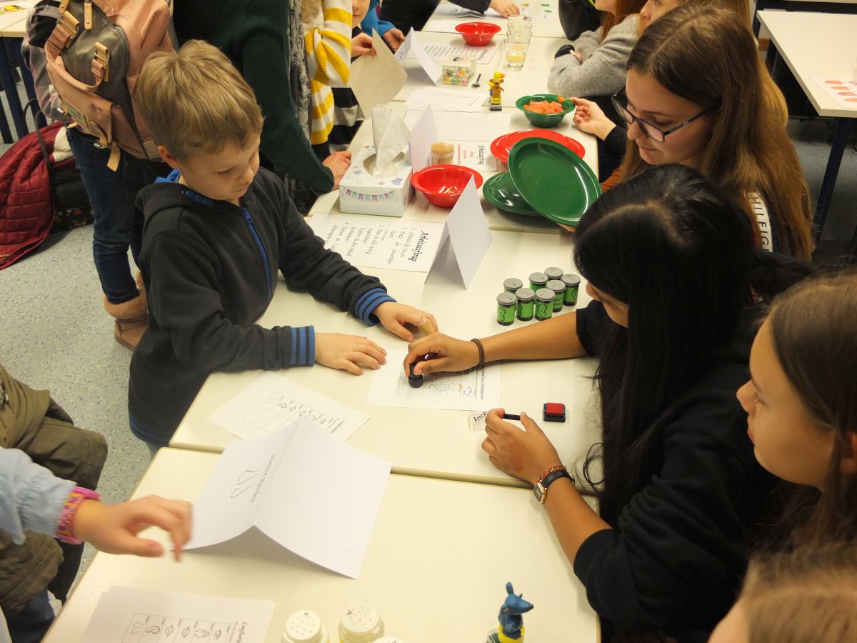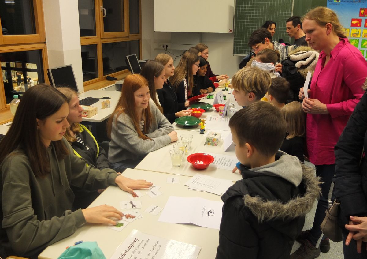 Aufgeteilt in Gruppen wurde dann die Realschule erkundet. Angeführt von Schülerinnen und Schülern der Klasse 7a wurden die Naturwissenschaften, die Schulküche, die Technikräume, die Mensa und die Schulbibliothek besucht. Schülerinnen und Schüler der Realschule hielten mit ihren Lehrkräften Vorführungen, Mitmachstationen und Überraschungen bereit. Ebenso stellte sich das Fach Englisch und das Fach Wirtschaft, Berufs- und Studienorientierung vor.