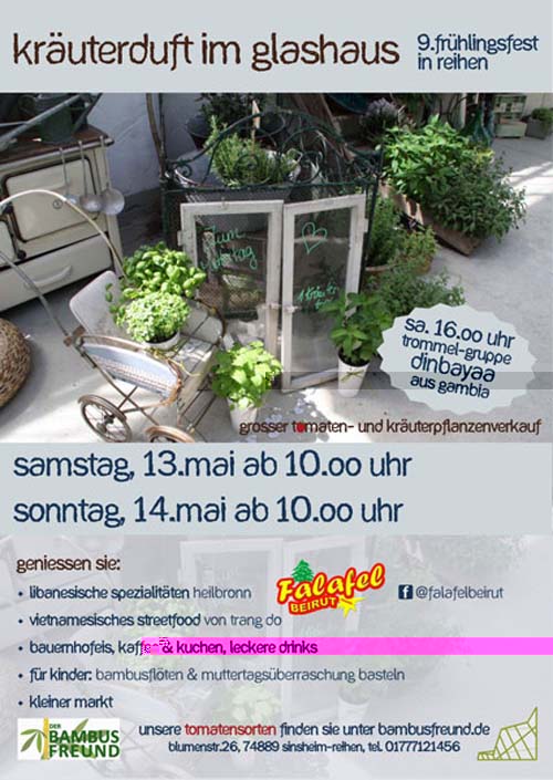 Samstag, den 13. Mai und Sonntag, den 14. Mai 2017 ab 10.00 Uhr  beim Bambusfreund in Sinsheim-Reihen