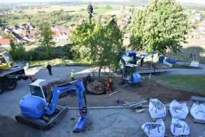 Man habe ganz bewusst ein positives Zeichen in diesen schweren Zeiten setzen wollen, sagte Michael Epple zu der großzügigen Spende (5400,- Euro netto). Die Krim-Linde, ein ideales Bienennährgehölz, soll eine Wuchshöhe von 15 – 18 Metern erreichen mit einem Kronendurchmesser von 7 – 8 Metern. Bis dahin ist in den nächsten Jahren viel Pflege nötig, um die sich die Grünflächenabteilung der Stadt Sinsheim kümmert. Der Baum wurde von städtischen Mitarbeitern mit einem LKW-Kran in die Pflanzgrube mit einer Tiefe von etwa 2,00 Metern und einem Durchmesser von rund 3,00 Metern gehoben.
