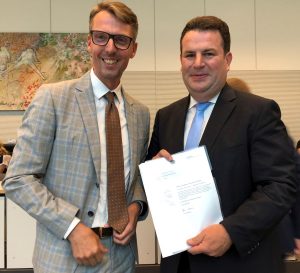 SPD-Bundestagsabgeordneter Lars Castellucci übergibt Unterschriften an Arbeitsminister Hubertus Heil