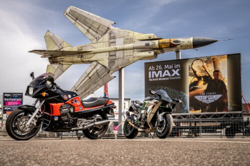 Der heiß erwartete Action-Blockbuster Top Gun Maverick wird am 26. Mai die deutschen Kinos erobern – so auch das IMAX Kino im Technik Museum Sinsheim. Neben dem Action-Sequel präsentiert die Einrichtung zwei PS-starke Highlights: Die Kawasaki GPZ 900R Ninja und Ninja H2, modellgleiche Motorräder aus den beiden Top-Gun-Filmen, sind parallel zum Film im IMAX-Foyer ausgestellt. Top Gun Maverick gibt es vom 26. Mai bis 8. Juni täglich um 17:15 Uhr und 20:15 Uhr zu sehen, am 6. Juni auch in der englischen Originalversion.