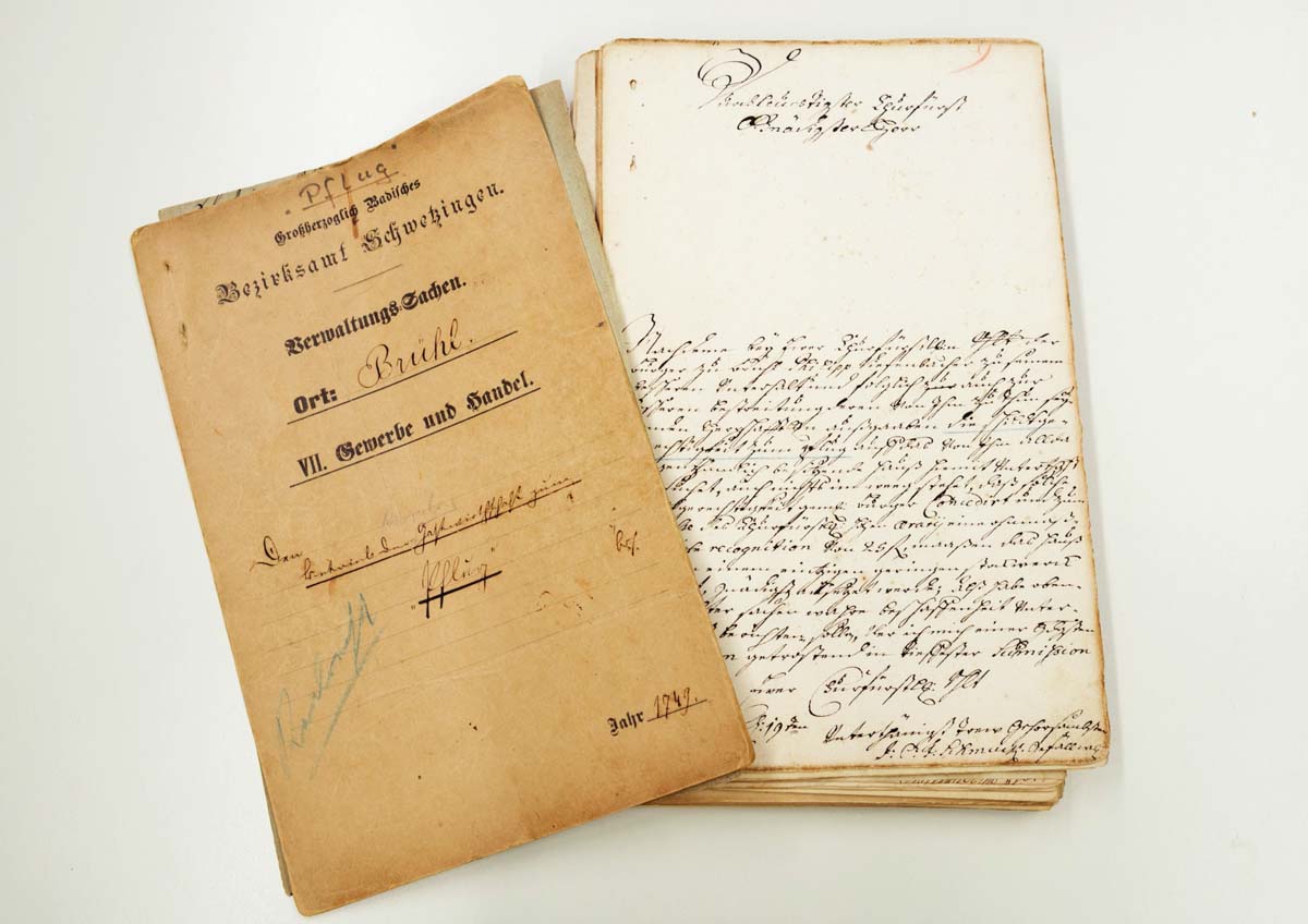 (Quelle Landratsamt Rhein-Neckar-Kreis): Eine der ältesten Akten im Bestand des Kreisarchivs ist diese Gaststätten-Akte über ein Brühler Lokal.