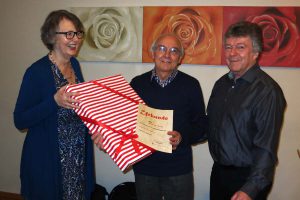 David A. Thorpe wurde für 20-jährige Mitgliedschaft geehrt. Annerose Hassert, David A. Thorpe, Franz Blaser (von links).
