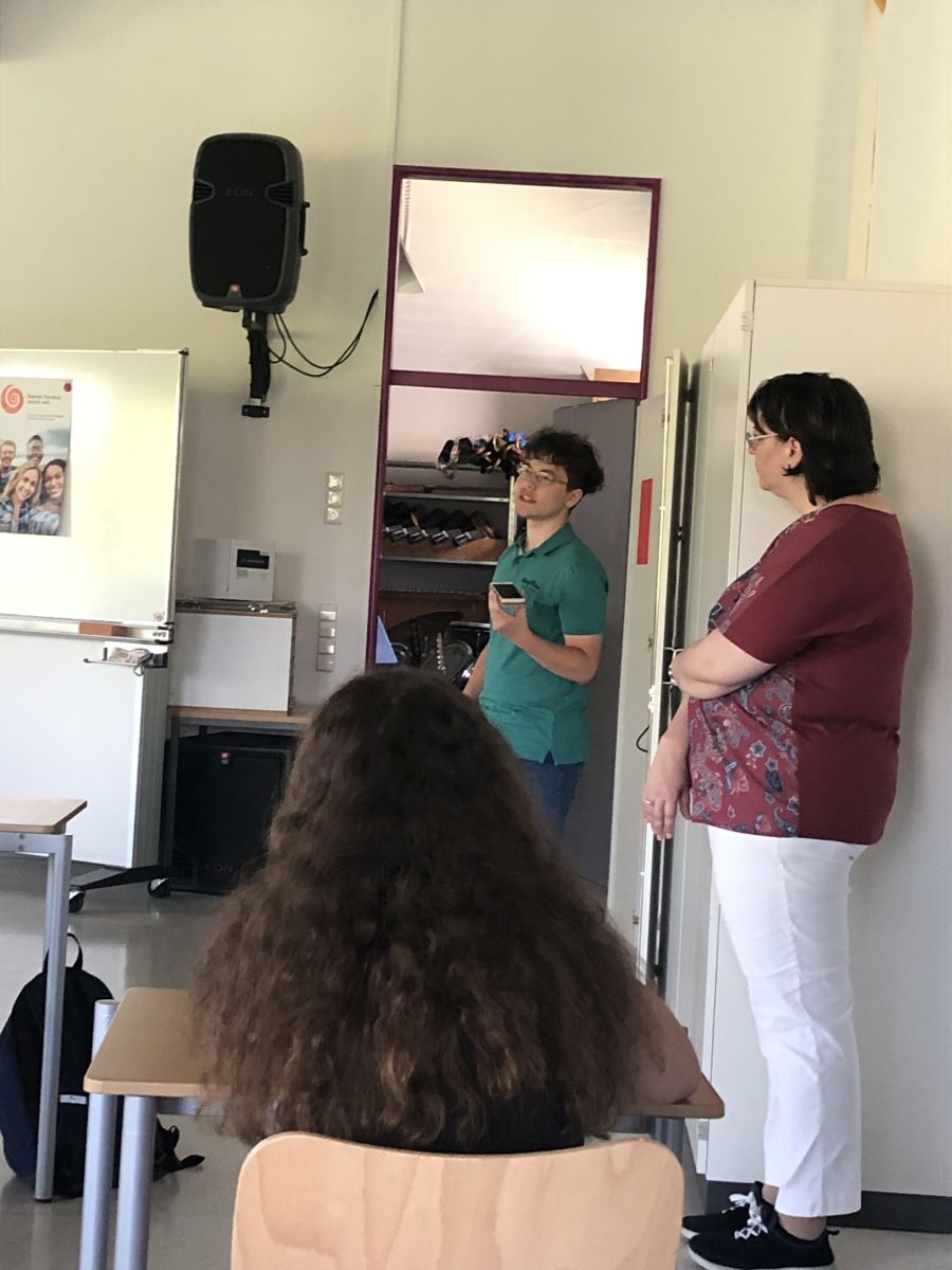 Schulleiter Holger Gutwald-Rondot bedankte sich bei den Schülerinnen und Schülern für ihren Einsatz und bei den begleitenden Lehrerinnen für deren Engagement. Er bedauerte, dass die Preisverleihung nur im kleinen Rahmen mit Mindestabstand im Musiksaal der Schule ohne auswärtige Gäste stattfinden konnte.