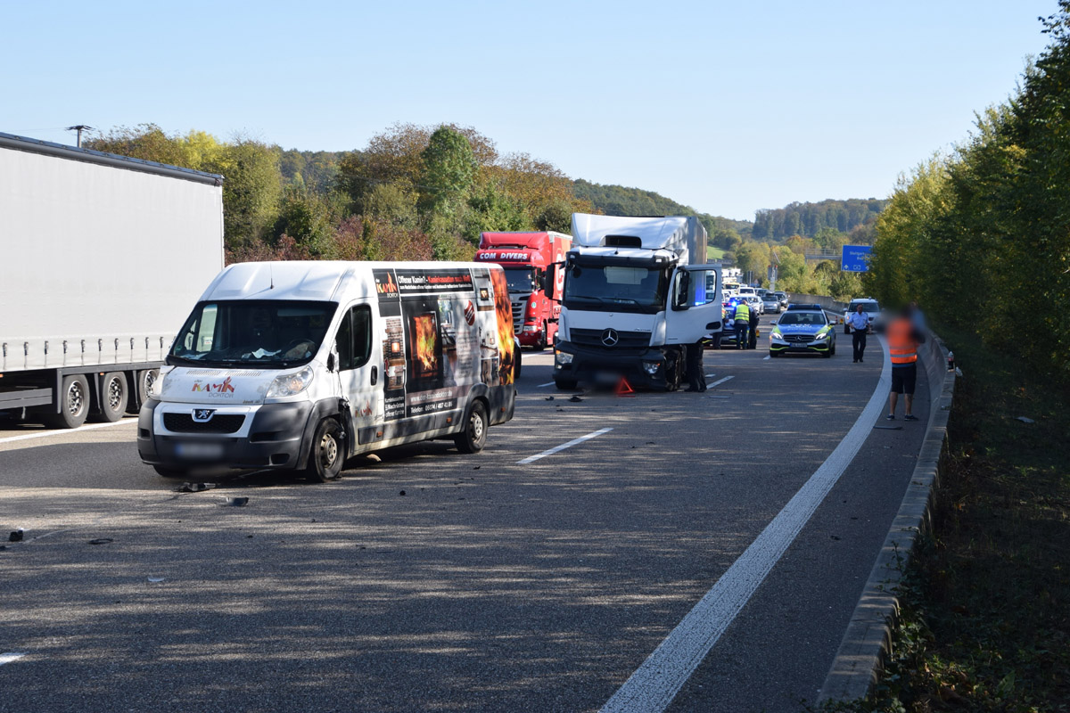 A6/Sinsheim. (red) Zwei Verletzte forderte ein Verkehrsunfall am Montagvormittag auf der A6 bei Sinsheim. Wie ein Polizeisprecher auf Nachfrage mitteilte, ereignete sich der Unfall gegen 11.40 Uhr zwischen den Anschlussstellen Sinsheim-Steinsfurt und Sinsheim-Süd in Fahrtrichtung Mannheim. Ein Lastwagenfahrer aus Koblenz war aus bislang unbekannten Gründen mit einem Peugeot-Kleintransporter zusammengestoßen. Dieser wiederum kollidierte mit einem weiteren Kleintransporter. Die beiden Insassen des Peugeot-Transporters erlitten leichte Verletzungen, der Lastwagenfahrer sowie der Fahrer des anderen Transporters blieben unverletzt. „Während der derzeit noch andauernden Unfallaufnahme müssen der linke und mittlere Fahrstreifen gesperrt werden“, berichtet Polizei-Pressesprecher Dieter Klumpp. So wurde der Verkehr über die rechte Fahrspur sowie den Standstreifen an der Unfallstelle vorbeigeleitet. „Die Bergungsfahrzeuge sind eingetroffen, Autofahrer müssen sich jedoch auf einen längeren Rückstau einstellen“, meint Klumpp abschließend.