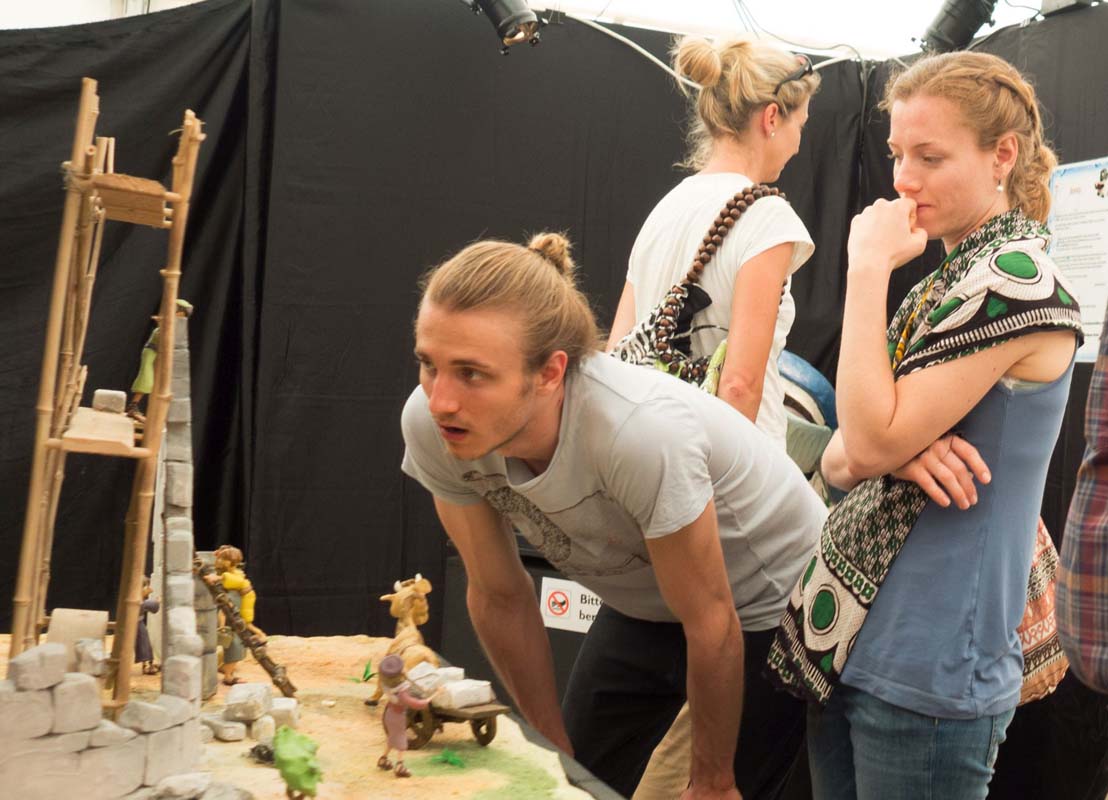 Kinder freuten sich übers Ponyreiten im Park. Oder lernten von Myriam Schott, Tiere und Menschen aus Knetmasse zu formen. Ihre „Knetgummibibelabenteuer“ wurden zum ersten Mal in Deutschland gezeigt und brachten Jung und Alt zum Schmunzeln. Die Künstlerin aus dem Elsass bildet biblische Szenen wie David und Goliath, Jona und den Wal oder Noah und die Arche detailreich, humorvoll und farbenfroh von Hand aus Knetmasse. Die Gesichter begeisterten und luden zum Nachdenken ein. Die junge Französin erklärte Kindern beim Kneten, was die Figuren bedeuten.