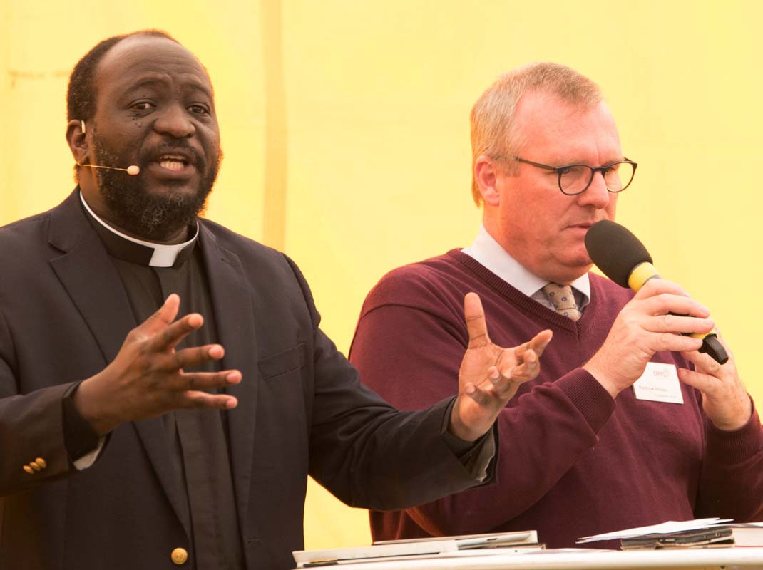 Im Festgottesdienst forderte der kenianische Pastor Francis Omondi die Christen in Europa auf, sich verstärkt gegen den Klimawandel einzusetzen und auf Regierungen einzuwirken, damit diese ihre Klimaversprechen einhielten. Rev. Francis lebt im ostkenianischen Garissa, einer Region, die derzeit von einer verheerenden Dürrekatastrophe und Hungersnot heimgesucht wird. Die Ursachen sind Klimawandel und Krieg. „Die Menschen verlieren alles, Tausende hungern“, berichtete er, „aufgrund von Wassermangel stirbt das Vieh, die Lebensgrundlage der Menschen, und es gibt keine Ernte.“ 86 kenianischen Mitarbeiter versorgen, finanziert von der DMG, momentan tausende Familien mit Trinkwasser und Nahrung. Sie bohren Brunnen und helfen medizinisch. Der Schwerpunkt liegt auf der Versorgung von Kindern, so Rev. Francis. Die DMG will 90.000 Euro in die Hungerhilfe investieren und bittet um Spenden. Der Kenianer dankte herzlich für diese Unterstützung.