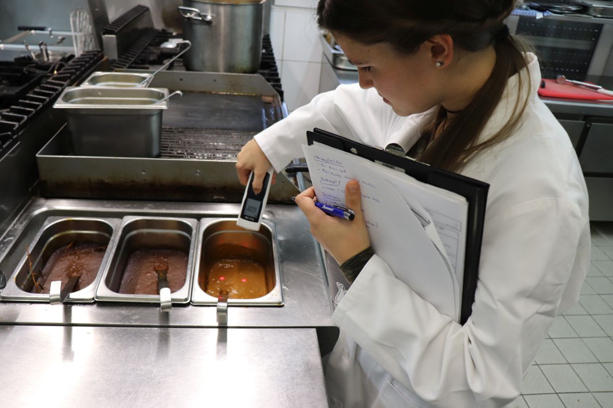 - Sowohl heiße als auch kalte Lebensmittel bzw. deren Verarbeitung werden geprüft: Auf dem linken Bild misst Lebensmittelkontrolleurin Mareike Huber vom Rhein-Neckar-Kreis die Temperatur von Soßen in einem Restaurant, das rechte Bild zeigten den Innenraum einer Eiswürfelmaschine mit sporenartigen Belägen. Gerade hier ist die Gefahr einer mikrobiologischen Verschleppung sehr hoch.
