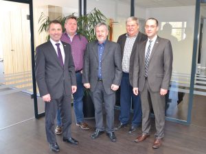 Tobias Schutz, Technischer Dezernatsleiter, Bernd Kippenhan, Amtsleiter für das Amt für Infrastruktur und Guido Brode, Personalratsvorsitzender, schlossen sich den Glückwünschen an und übergaben dem Jubilar ein Präsent.