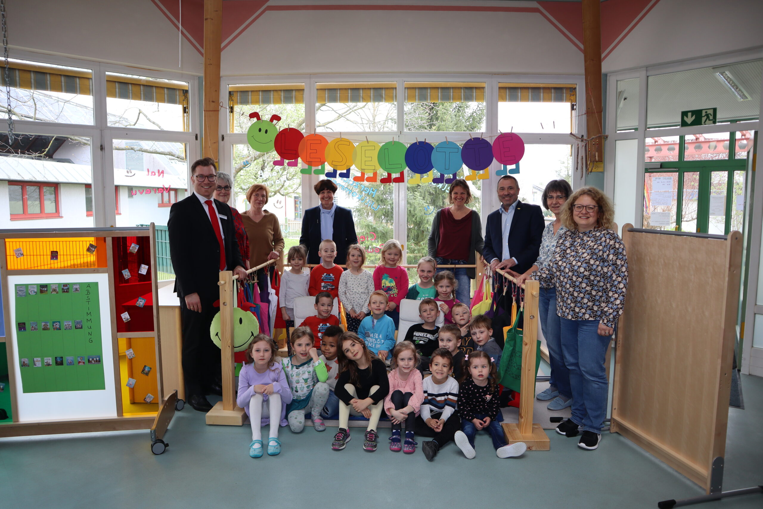 (Stadt Sinsheim): Die Freude von Kindern und Erzieherinnen des städtischen Kindergartens „Regenbogen“ Hilsbach-Weiler über die neuen Bücher ist groß