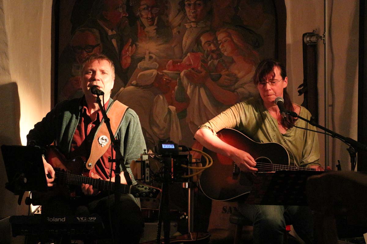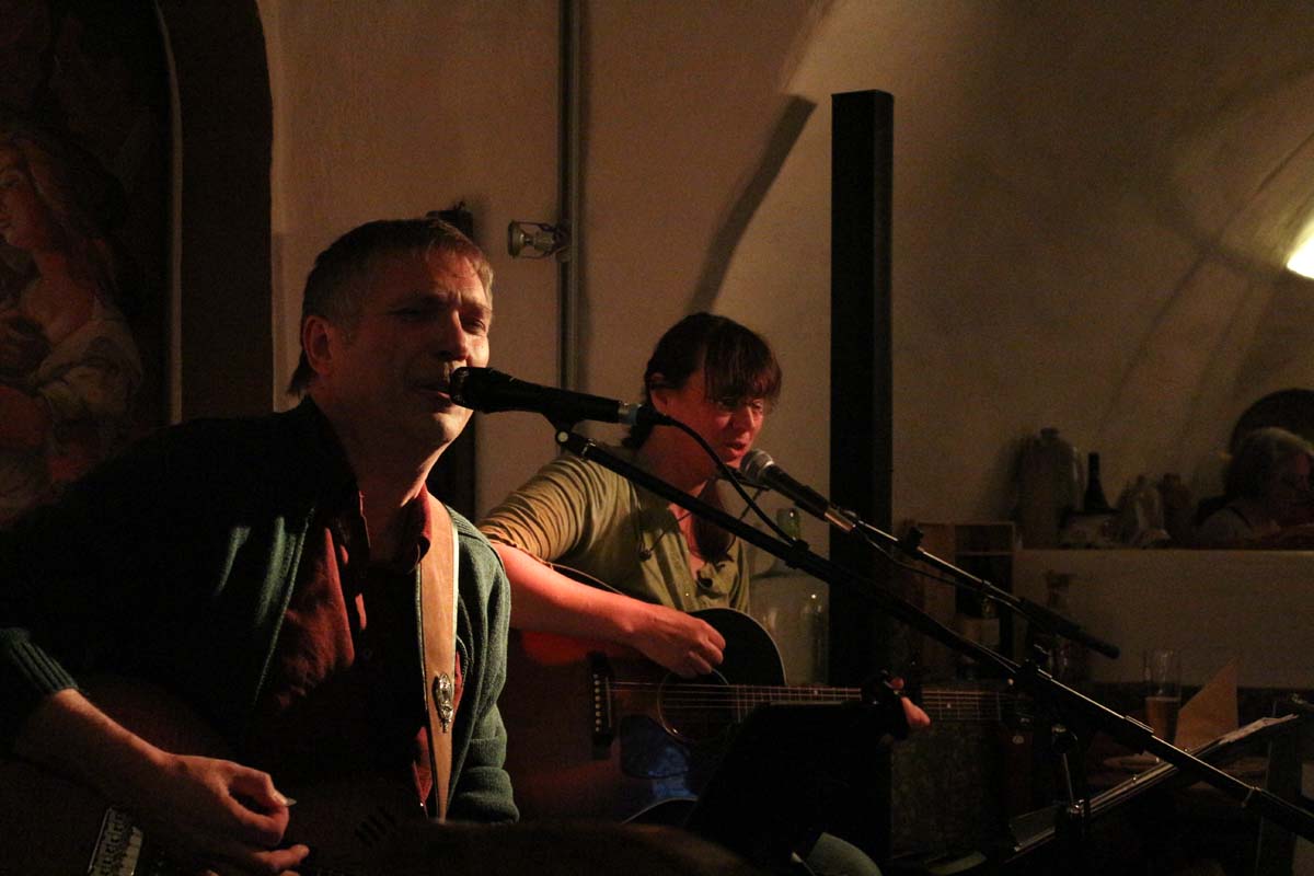(cr) Es ist immer wieder ein Erlebnis wenn grossartige Kleinkunst auf kleine Locations treffen. So auch am letzten Donnertag in der kleinen Enotega Krokodil, als Beate Lesser & Karl Schramm mit Songs From The Golden Age Of Pop ein kleines aussergewöhnliches Konzert gaben. Das hatte schon etwas von einem gemütlichen Wohnzimmerkonzert. Bei angenehmer Lautstärke und ausgesuchten Songs konnte man zu den kulinarischen Genüssen der Enotega, dieses Gitarren- und Gesangsduo so richtig geniessen. Hier konnte man den Alltagsstress einfach fallen lassen. Das Duo widmetesie sich der bunten Ära der 60er/70er-Jahre. Sie zelebrierten Flower Power, nahmen die Zuhörer mit auf psychedelische Trips und spielten die Hymnen der Love & Peace Generation.