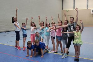 (zg) Im Rahmen des Kinderferienprogramms der Stadt Waibstadt hatte der Tanzsportclub Rot-Gold Sinsheim zu „Let`s dance “ aufgerufen. Zahlreiche Kindergartenkinder aber auch Schulkinder kamen trotz des heissen Sommertages in die Sporthalle in Waibstadt. Der Unterricht war in 2 Gruppen geteilt. Bei den 4-7 jährigen zeigte die Trainerin des Tanzsportclubs Rot-Gold, Piti Lessmann, spielerisch viele Koordinationsübungen und einfache Mitmachtänze. Bei den Schulkindern kam auch das Spiel und die Bewegung auf Musik nicht zu kurz. Beim Rope Skipping, alleine im Takt oder zu Zweit koordiniert, kamen die Tänzer und Tänzerinnen so richtig ins Schwitzen. Besonders erfreut war die „Vortänzerin“ über die Teilnahme von 3 tanzmotivierten Jungs. Am Ende des Ferienprogramms gab es für die abholenden Eltern eine Kostprobe vom erlernten TV „Let`s dance“- Eröffnungstanz.