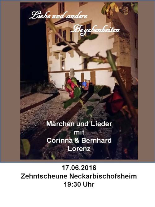 (zg) Zu einem Vortragsabend der besonderen Art laden wir Sie sehr herzlich ein. Unter dem Motto „Liebe und andere Begebenheiten“ werden Corinna und Bernhard Lorenz Märchen und Lieder aus längst vergangenen Zeiten vortragen.