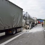 (zg) Kurz nach 10 Uhr ereignete sich auf der A6 zwischen Bad Rappenau und Sinsheim-Steinsfurt, Fahrtrichtung Mannheim, ein schwerer LKW-Unfall. Ein LKW-Fahrer übersah aus bislang unbekannten Gründen ein Stauende und krachte in das Heck eines mit Silikonpulver beladenen Tankwagens. Dieser wurde auf zwei weitere LKW geschoben. Der Unfallverursacher wurde in seinem völlig zerstörten Fahrerhaus eingeklemmt und musste durch die Feuerwehr Sinsheim mit hydraulischem Rettungsgerät befreit werden. Nach Stabilisierung durch den Notarzt musste er mit dem Rettungshubschrauber in eine Spezialklinik geflogen werden. Die A6 musste für die Dauer der Unfallaufnahme und Bergungsarbeiten voll gesperrt werden.