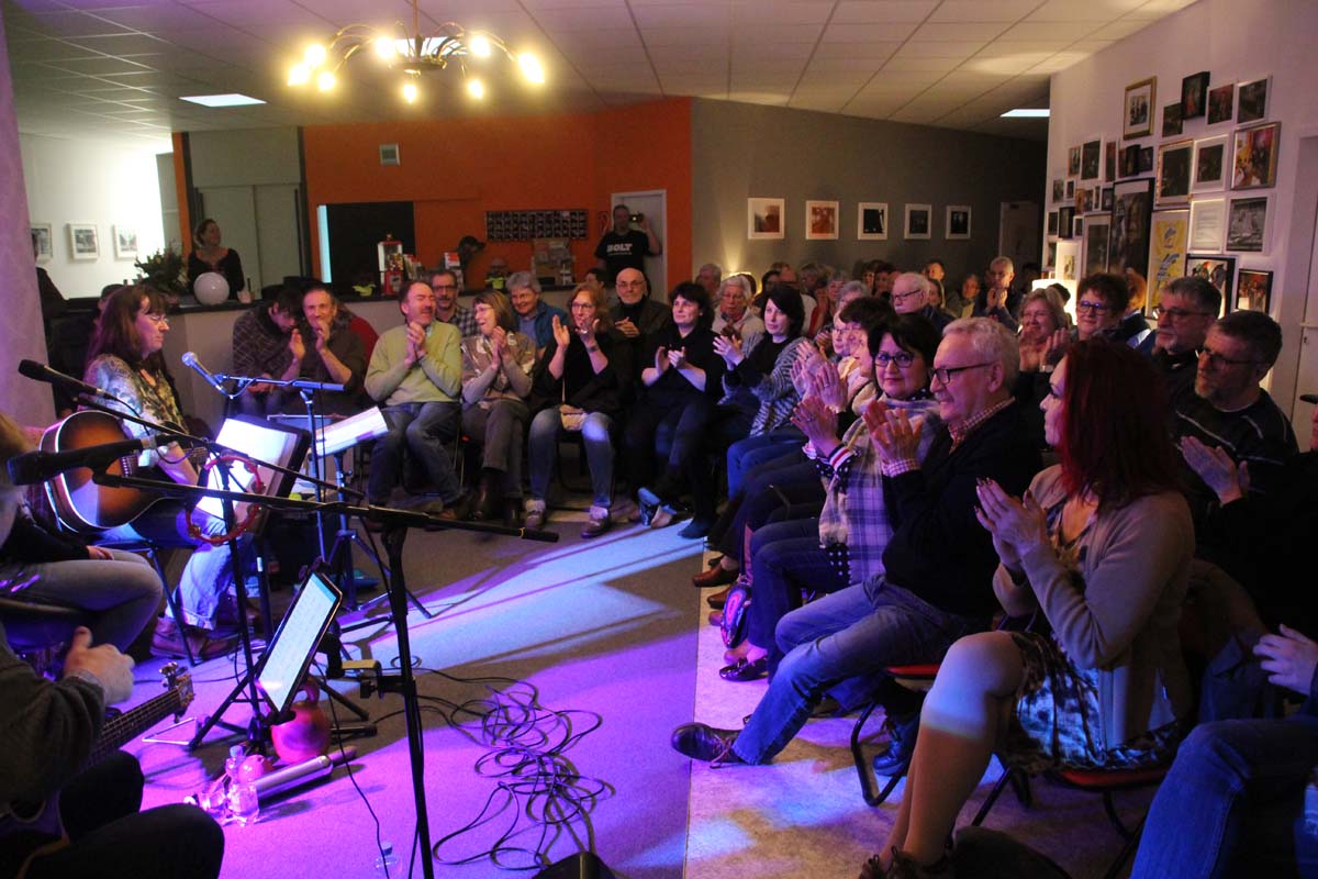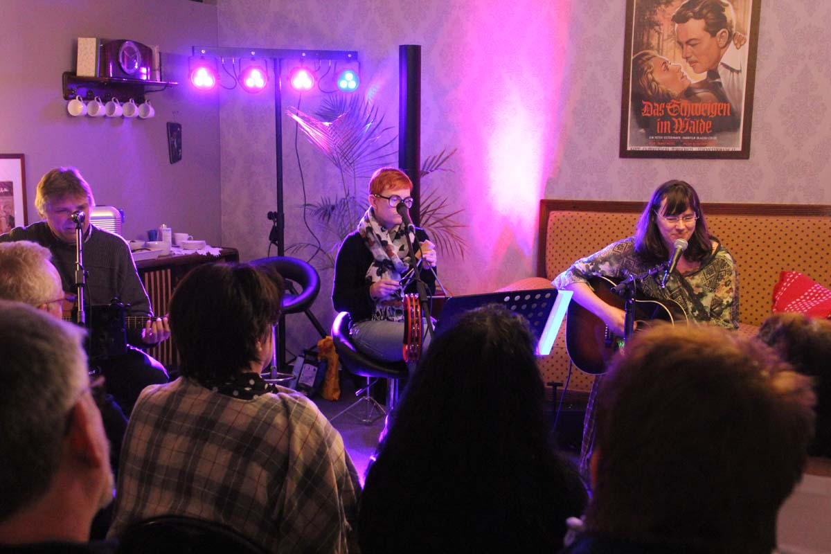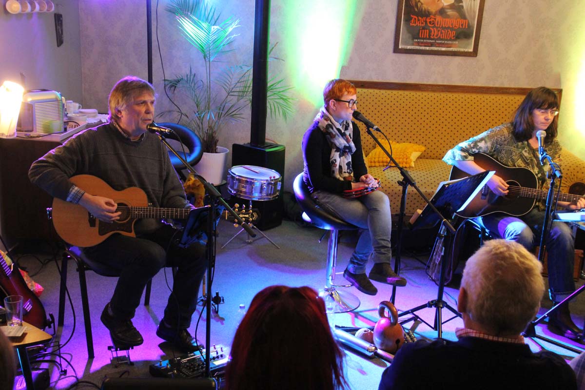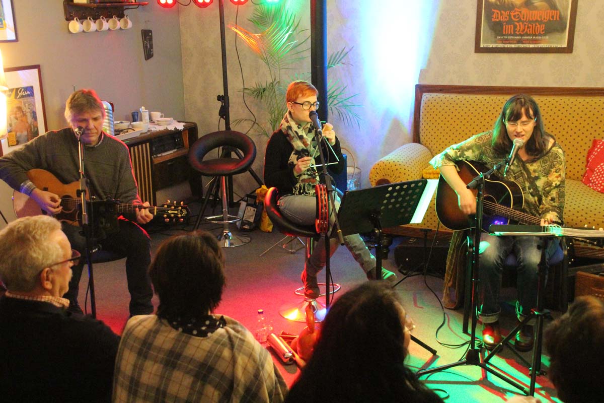 (cr) Im Therapiezentrum am Museum von Ulli Kimpel gab es dieses Mal eine besondere Therapie. In seiner gemütlichen Wohnzimmer Atmosphäre gab es Balsam für die Ohren. Und er präsentierte Kunst und Kultur vom Feinsten. Und wer könnte dies besser als die „Drei Musketiere“ Karl Schramm, Beate Lesser und Didi Leinberger. Völlig losgelöst von einem festen Programm zelebrierten Sie musikalisch die Flower Power Ära und den Songs From The Golden Age of Pop. Der Wunsch der Musiker und des Publikums wird zum Programm. Dieses harmonische Trio weiss natürlich zu begeistern und sind ja auch schon für ihre humoristische musikalische Art bekannt. Gerne stimmte bei den Songs das Publikum mit einer Choreinlage mit ein. Für die Kinder unterm Regenbogen, zu Gunsten der Aktion „Wann hört der Regen auf“ spielten die drei Musiker natürlich ohne Gage und auch das Publikum kam gerne und zahlreich und füllte Ulli´s Wohnzimmer bis auf den letzten Platz. Es muss nicht gross und laut sein, auch in kleinem Rahmen bei angenehmen Lautstärken lässt sich ein so toller Abend bei guter Live Musik geniessen. Da freut man sich doch schon auf den nächsten Abend in Ulli Kimpels Wohnzimmer.