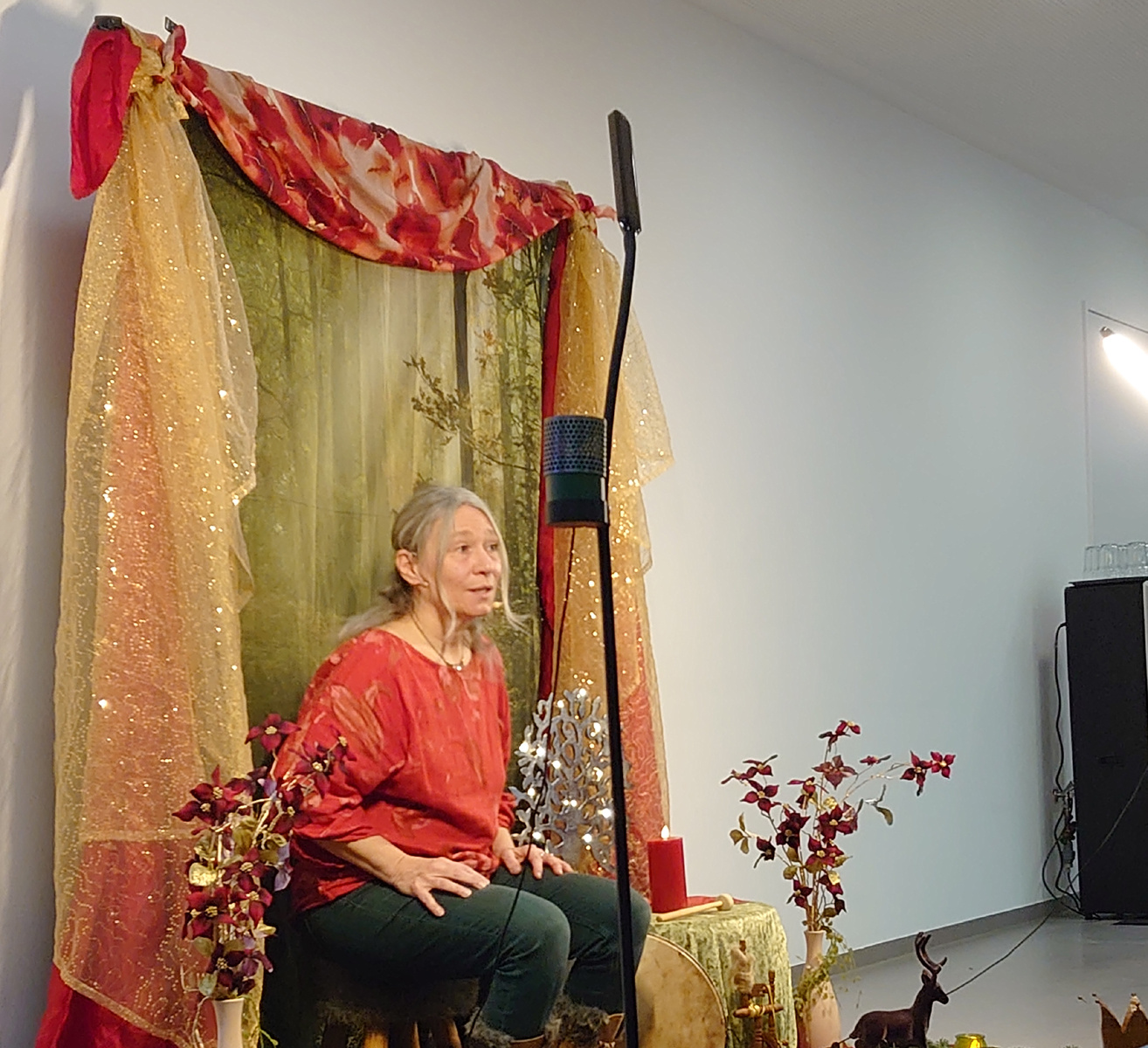 Die Besucher erlebten eine faszinierende Reise durch Märchen und Mythen aus aller Welt – darunter das rumänische Märchen „Die drei goldenen Haare“ sowie die weniger bekannte Erzählung „Die Kristallkugel“ der Gebrüder Grimm. Zwischen den Geschichten sorgte mystischer Gesang für eine besondere Atmosphäre und ließ das Publikum tief in die magischen Welten eintauchen. Den Abschluss bildete das bezaubernde Märchen „Mutter Holunder“ aus Lothringen, das mit seiner sanften, aber eindringlichen Botschaft den Abend harmonisch abrundete.