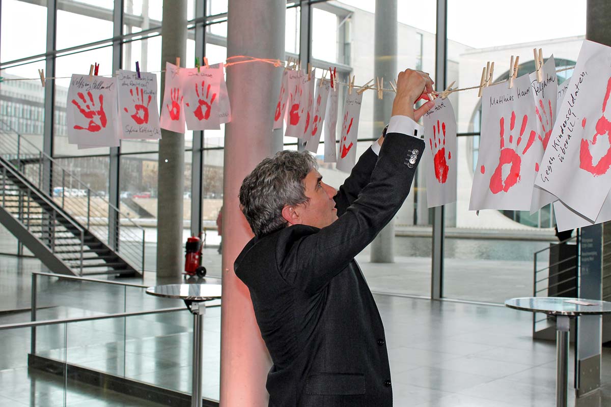 Dr. Stephan Harbarth (CDU), der Bundestagsabgeordnete des Wahlkreises Rhein-Neckar, ist auch in diesem Jahr wieder mit von der Partie und unterstützt die Aktion Rote Hand. Am heutigen Mittwoch, 4. Februar wurde von der Kinderkommission des Deutschen Bundestages im Paul-Löbe-Haus ein Aktionsstand durchgeführt, an welchem Abgeordnete, Mitarbeiter wie auch Besucherinnen und Besucher des Deutschen Bundestages ihre rotgefärbten Handabdrücke abgeben konnten.