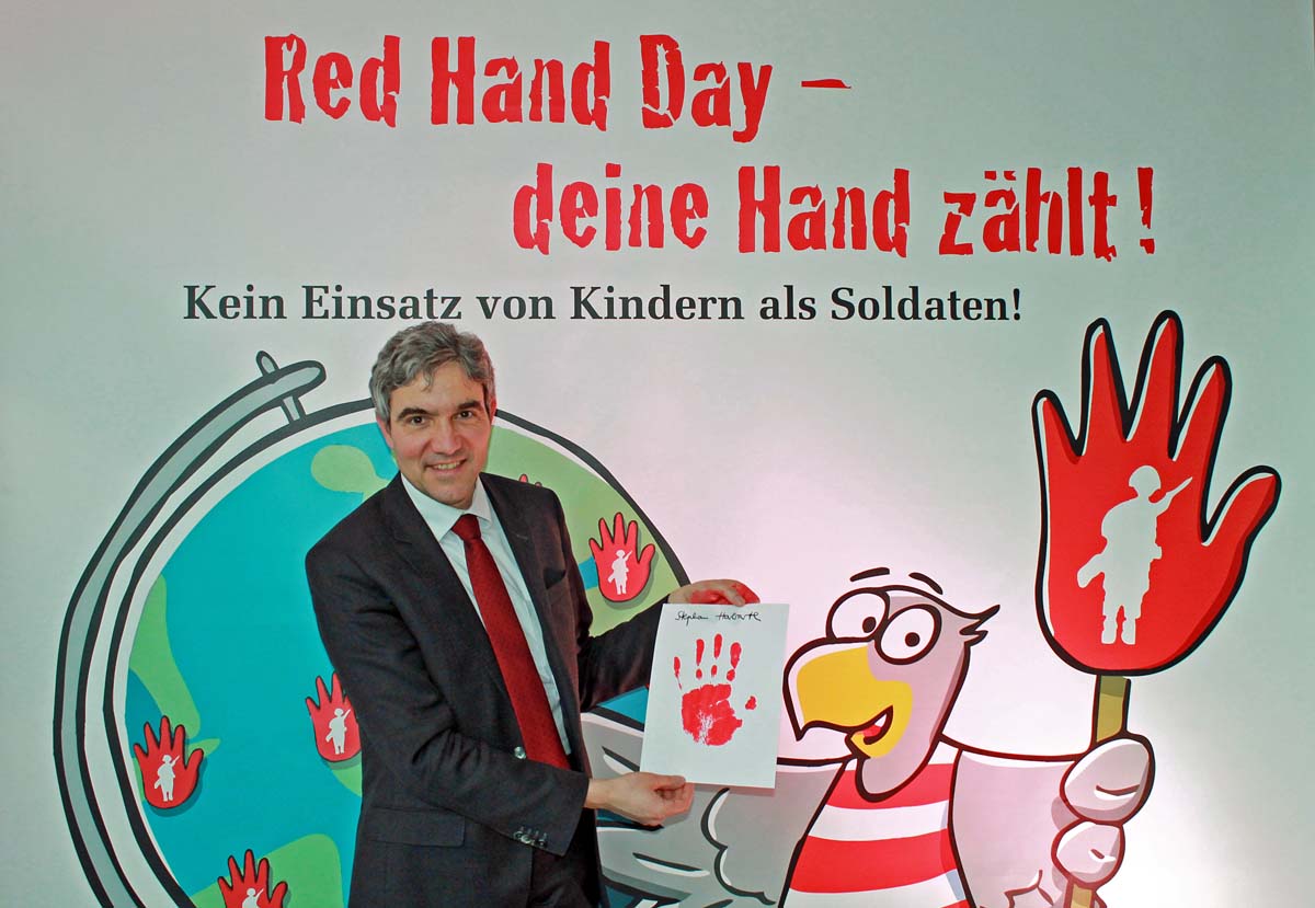 harbarth2-red-hand-04022015 (zg) Berlin / Rhein-Neckar. Nach Angaben der Vereinten Nationen werden weltweit immer noch rund 250.000 Kinder in Kriegen als Soldatinnen und Soldaten missbraucht – ein Thema, das vielleicht gar nicht so bekannt ist.