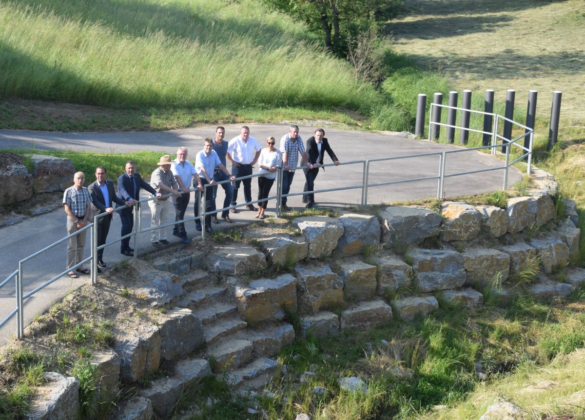 Bild: (Stadt Sinsheim): Offizielle Inbetriebnahme und Begehung des Hochwasserrückhaltebeckens. V.l.n.r.: Alex Riederer (Gemeinderat), Tobias Schutz (Dezernatsleiter Planung, Bau, Infrastruktur), Oberbürgermeister Jörg Albrecht, Harald Gmelin, Peter Hesch (beide Gemeinderat), Mirco Büchler, Simon Schuster (beide Willaredt Ingenieure), Bernd Kippenhan (Leiter Amt für Infrastruktur), Nicole Hetzel (Willaredt Ingenieure), Thomas Gellner (Fa. Lintz & Hinninger), Dr. Markus Schuster (Landratsamt Rhein-Neckar)