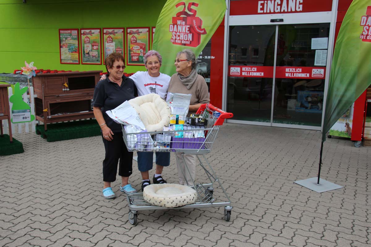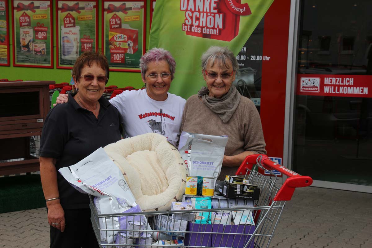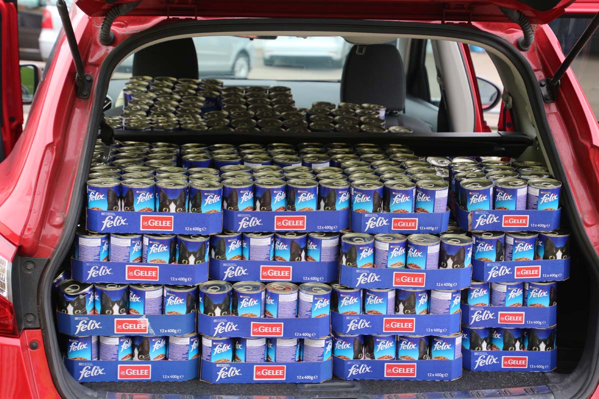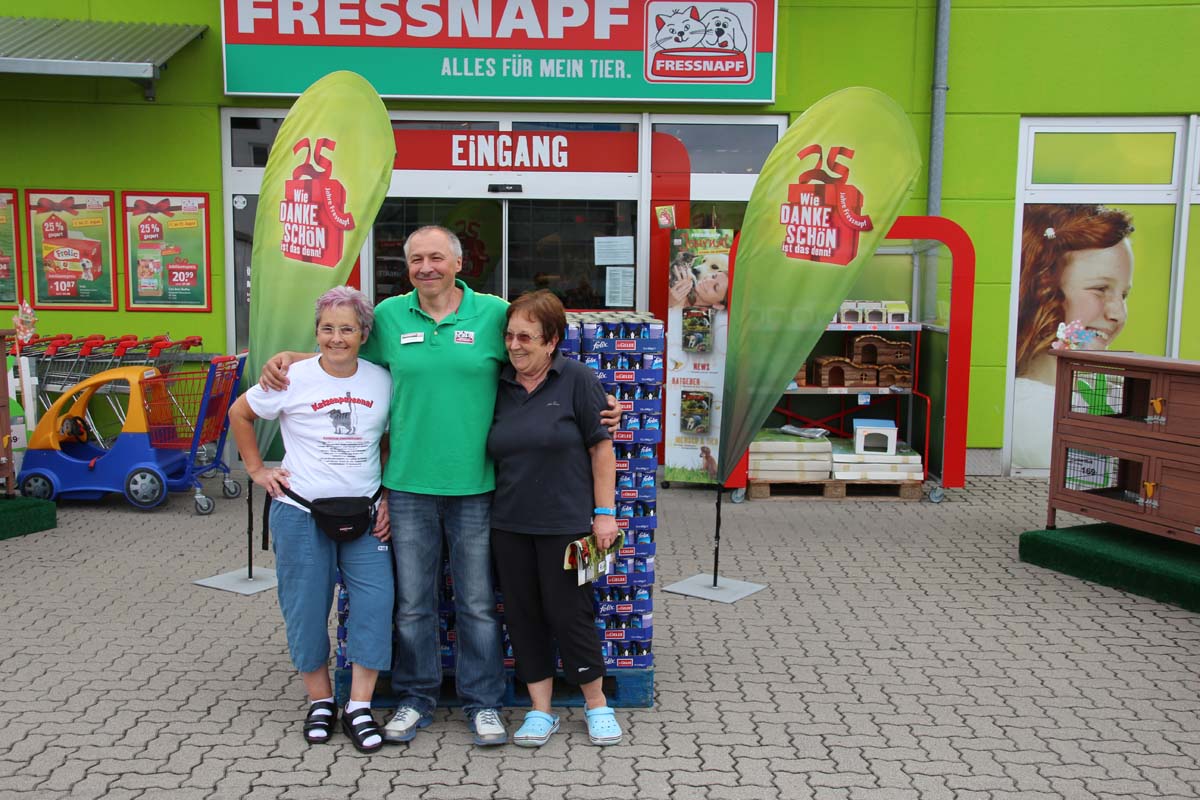 Ohne solche Spenden wäre ihre Arbeit gar nicht möglich. Deshalb war dies auch Ehrensache für den Fressnapf Unternehmer Michael Kohn. Mit 1872 Dosen Katzenfutter, das sind eine 3/4 Tonne, ist für Lilo Bastian viel geholfen. Das ist für sie fast schon wie Weihnachten. Doch damit war nicht genug, eine Fressnapf Kundin spendete ihr spontan 50 Euro und eine weiter ältere Kundin und Katzenliebhaberin übernahm ihre Einkaufsrechnung für ihre Katzenbabies in Höhe von über 170 Euro. Eine grössere Freude hätte man ihr nicht machen können. Das Strahlen in ihrem Gesicht und ihre Freude machte alle glücklich. Ihre ehrenamtliche Arbeit ist einfach mehr als nur bemerkenswert und hätte bestimmt einen Orden verdient. Jedoch wären ihr bestimmt weitere Unterstützung ihre Arbeit lieber.