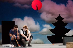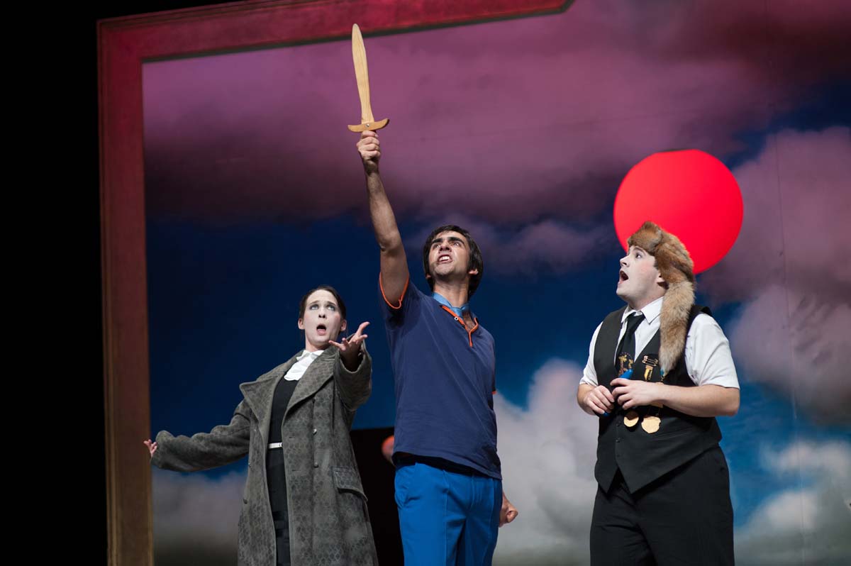 Die junge Regisseurin Katharina Schmidt braucht keine große Bühnentechnik oder ein aufwändiges Bühnenbild, um Mios Reise durch das Land der Ferne lebendig werden zu lassen. Einige Requisiten, zwei Mikrofone für die Geräuscherzeugung sowie ein Ensemble von spielfreudigen Schauspielern, die mit Elan in die verschiedensten Rollen schlüpfen, genügen ihr. „Eine großartige Requisitenschlacht behindert nur die Fantasie der Kinder“, sagt die in Augsburg geborene Regisseurin, die von Spartenleiter Joerg Bitterich am Landestheater Neuss entdeckt und für „Mio, mein Mio“ an die Badische Landesbühne geholt wurde.