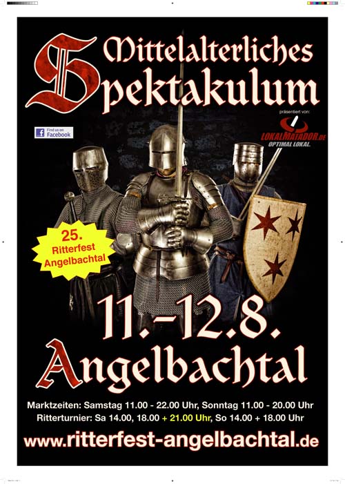 20.00 Uhr „Tavernenspiel“ mit Spielszenen, Musik, Gaukelei. Großes Abendfinale mit allen Künstlern des Marktes Lokalmatadorbühne anschl. Reiter-Show bei Fackelschein