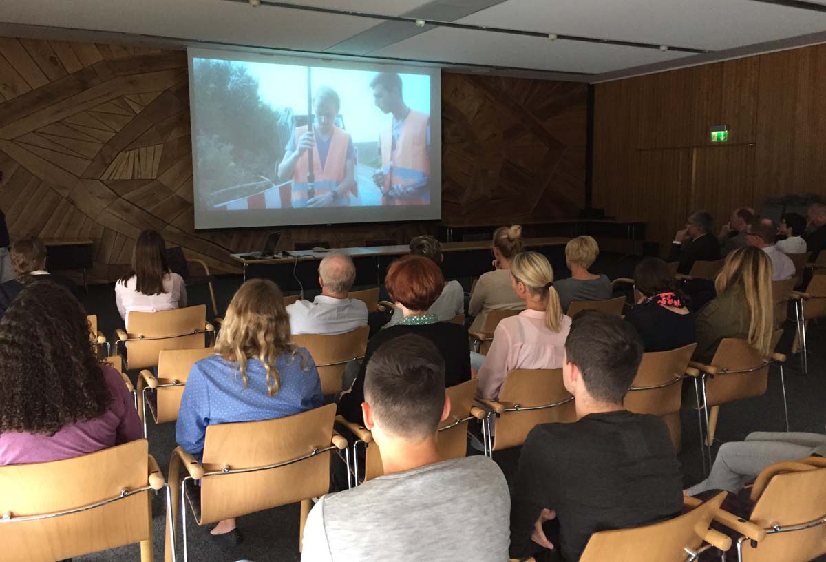 (zg) Großes Kino im Landratsamt Rhein-Neckar-Kreis: Vier neue Ausbildungsfilme feierten am Montag, 14. Mai 2018 im Sitzungssaal des 5. OG in der Kreisbehörde in Heidelberg Premiere. Die Filme sind als Kooperationsprojekt des Haupt- und Personalamts, des Büros des Landrats und Auszubildenden des Landratsamts Rhein-Neckar-Kreis entstanden. Für die professionelle Umsetzung konnte als verlässlicher Partner erneut die Firma brainyard aus Wiesloch gewonnen werden, die sich um das Schreiben des Drehbuchs, das Organisieren aller Requisiten, die Kameraführung sowie das Schneiden der Filmsequenzen und das Einfügen von Text und Hintergrundmusik kümmerten.