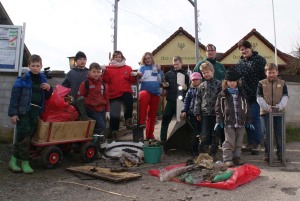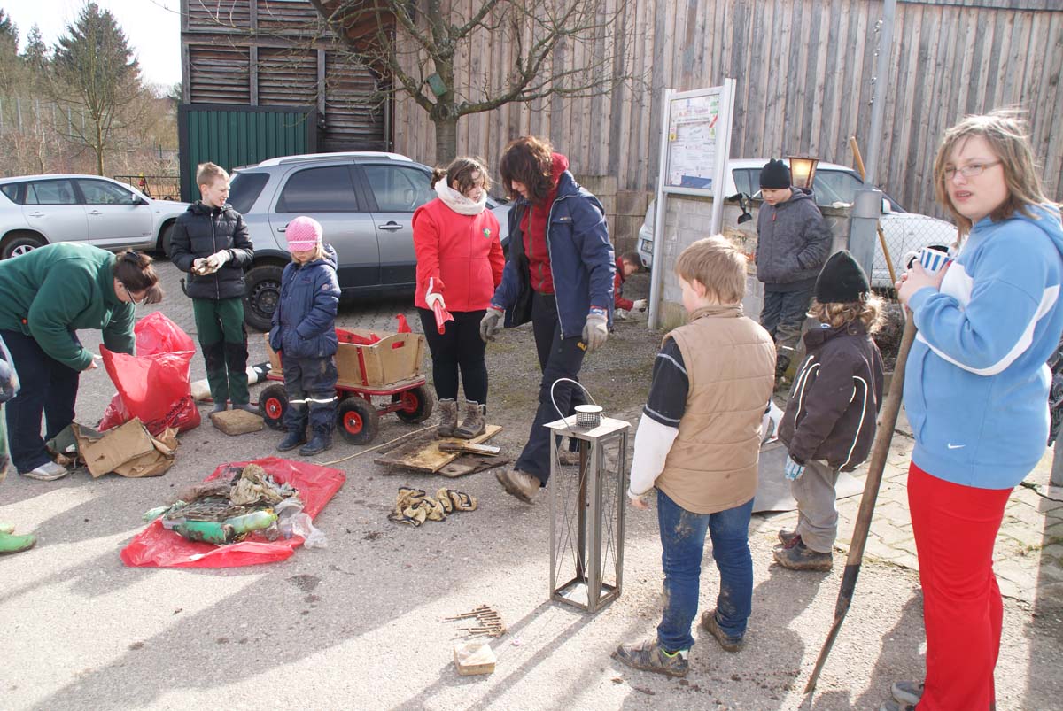 Fahrradreifen, Leitpfosten und allerlei Schrott waren dabei. Nach so viel Müll hatten die Kinder sich eine kleine Stärkung verdient.