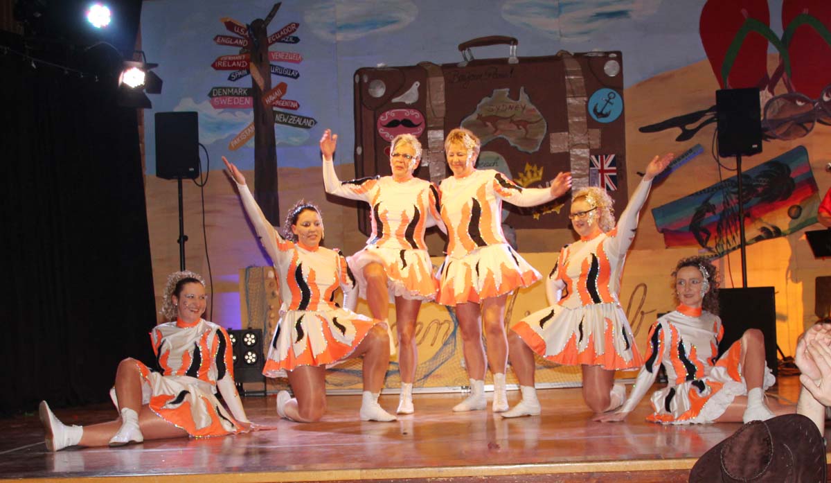 (zg) „Ned Normaal“ präsentierte sich der Bargener Carneval Club bei seiner Prunksitzung am vergangenen Freitag und brachte unter dem diesjährigen Motto „Ab in den Urlaub“ die ausverkaufte Halle zum kochen. Präsidentin Belinda Kuhn und Moderator Robert Hren begleiteten die Gäste aus nah und fern viereinhalb Stunden von einem Höhepunkt zum nächsten. Nach dem Einzug der Garden und Hexen wurden die ersten Küsschen bei der obligatorischen Verleihung der Kampagneorden verschenkt. Die Mottogruppe hatte sich wieder viel für den Einstieg in den Abend einfallen lassen und wurde frenetisch mit Beifall bedacht. Bei Ohrwürmern aus dem Repertoire von Helene Fischer standen die Gäste schnell auf den Stühlen. Mit Tanz- und Gardetanzeinlagen der Bambinis und der Minigarde des Vereins wurde auf die erste Bütt mit Hiltrud und Elvi übergeleitet, die ihre Erlebnisse und Erfahrungen mit der Männerwelt humorig in Szene setzten. „In göttlicher Mission“ gastierte die Tanzsportgruppe Asbach beim CCB und begeisterte, alle Sinne betörend, mit dem Musical Sister Act bevor die Bargener Gugge „Caipirinha Fäzzer“, musikalisch anspruchsvoll, für noch mehr urgewaltige Stimmung sorgte. Mit einem Showtanz der Minigarde des CCB zeigte der Vereinsnachwuchs erneut sein Können, gefolgt von einem Ausflug in den Orient der Junioren der Jazztanzgruppe Aglasterhausen. „Landarzt“ Hartmut Kolb machte in der Bütt schnell allen klar, dass sich der Veterinär auch auf Humanmedizin versteht und gab viele „menschliche Kleinigkeiten“ zum Besten. Danach setzte die große Jazztanzgruppe aus Aglasterhausen ihre „Weltreise“ fort und entführte die in Bargen versammelte Narrenschar, in der wieder besonders anspruchsvoll dekorierten Mehrzweckhalle, tänzerisch in ferne Gefilde. Die Große Garde der Hausemer Windbeutel beeindruckte in rot und schwarz ihr Publikum bevor „Pfarrer“ Wolfgang Schwarz den Bargenern die Leviten lies. Die „Brusler Schlabbedenlä“ kamen mit Guggenmusik über die gerade erst „ernüchterten“ Gäste daher und sorgten für ein musikalisches Erdbeben in der betagten Halle. Von ihrem Leid als Ehefrau und Mutter wusste Babsi Bachwinkler alias Monika Hönig zu erzählen und brachte die Lacher schnell auf ihre Seite. Neu formiert gab die vereinseigene Gruppe „Aventura“ beeindruckend ihr Debüt bei der Prunksitzung und stellte einmal mehr das Potential des Vereins unter Beweis. Erst auf den zweiten Blick entpuppte sich der sich anschließende Gardetanz als diesjähriger Beitrag des „Krampfodergschader“. Tänzerisch perfekt intoniert rissen die Akteurinnen nochmals das Narrenvolk auf die Stühle und heizten die Halle zu einer Begeisterungsstampede ein. Ihnen standen die jungen Männer von „Ned Normaal“ nicht nach, die vor dem großen Finale mit sportlichem Showtanz- und Artistikeinlagen brillierten. Als Feuerwehrmänner zogen sie durch die Halle und schreckten auch vor dem Einsatz mit Löschwasser nicht zurück. Last but not least gehörte der Dank des Vereins allen Akteuren und Helfern, die in Bargen wieder das Unmögliche möglich machten. Präsidentin Belinda Kuhn und Moderator Robert Hren dankten beim großen Finale mit Guggenmusik den technischen Helferinnen und Helfern, der Küchen- und Ausschankmannschaft, den Damen der Maske, dem Dekoteam. das wieder eine kunstvolle Hallendekoration realisiert hatte und allen, ohne die das Mammutwerk von Prunksitzung, Kinderfasching und Umzug nicht möglich wäre. Ein Ständchen, dem sich die Hallenschar anschloss brachten die CCBler ihrer Mittänzerin Laura Hönig, die mit ihrem Auftritt auch gleich noch ihren 18. Geburtstag begehen konnte.