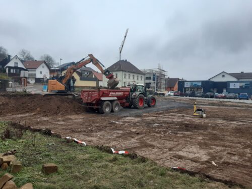 Nun haben die Bauarbeiten mit Erdarbeiten auf dem Grundstück in der Winterstraße 1 begonnen. Das Grundstück des Neubaus grenzt an die Karlsruher Straße an.